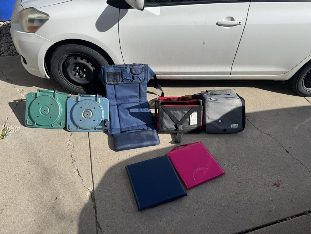 Selling as a package for $20. 4 of them clip/hook onto the bleacher, one does not, and 2 are cushions.