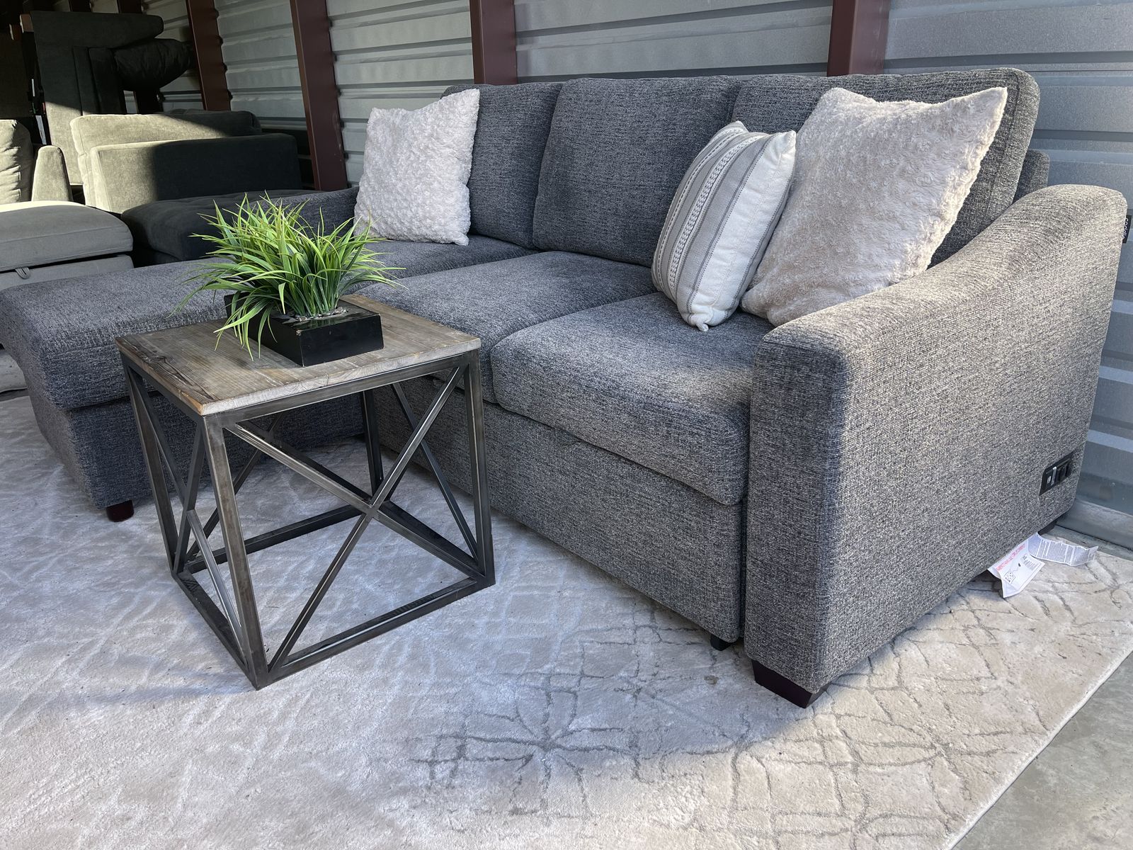 Features: Pull Out Sleeper Under Loveseat Under Chaise Lift Up Storage Compartment (2) Power Outlets and (2) USB Ports Chaise is Reversible