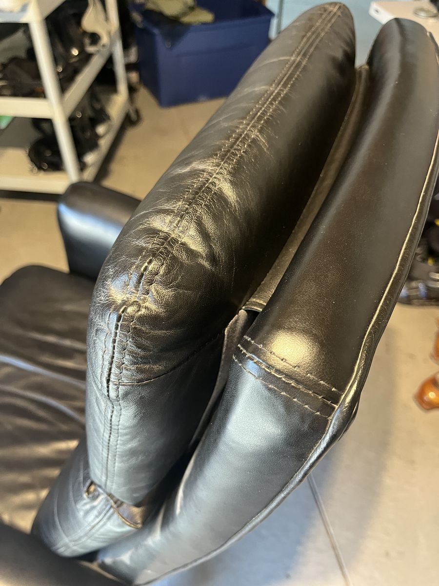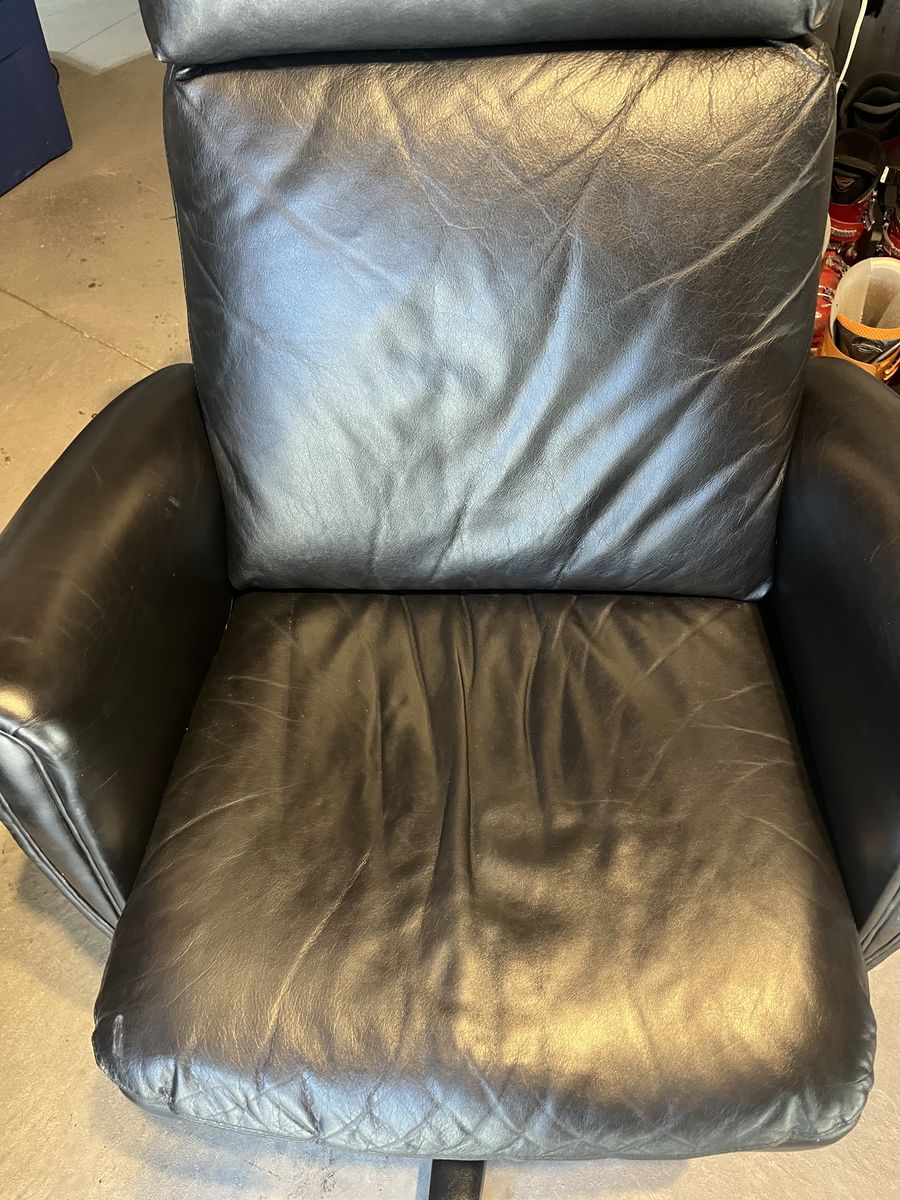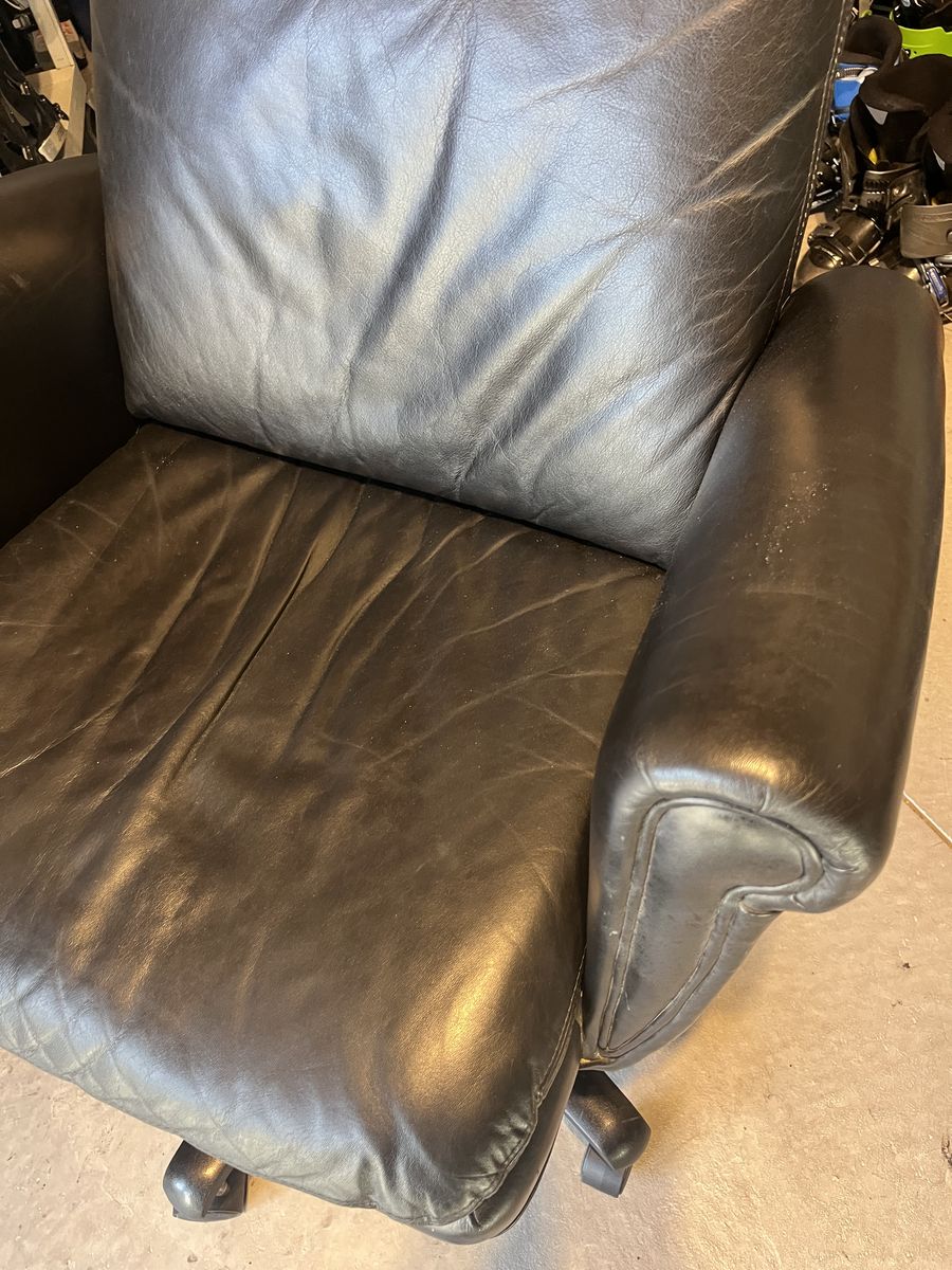 St Thomas black adjustable office chair, locks in place or rocks back, goes up and down, no rips or tears, comfortable, soft padding. 20 1/2 inches wide 18 inches deep, the back is 27 inches tall. Located in Saratoga springs