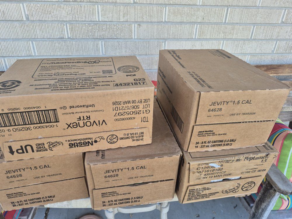 free cases of nutritional tube feeding drinks with March as expiration dates these have been kept in a cool area Free Vivonex Jevity Peptamen