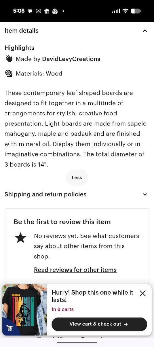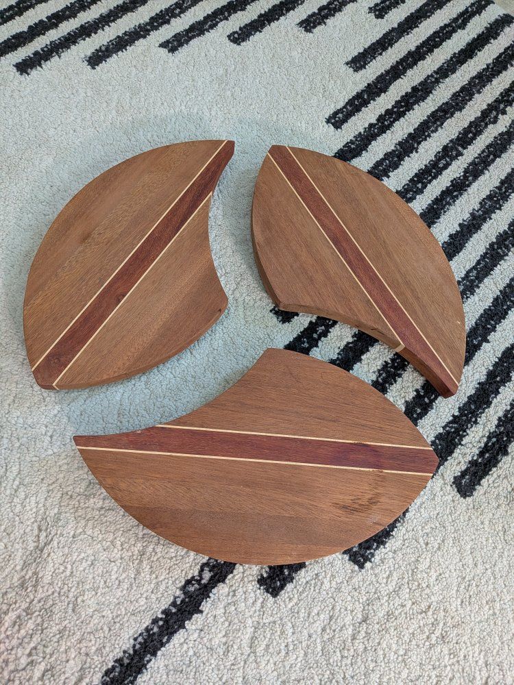 MCM David Levy Solid Hardwood Sectional Cutting & Serving Leaf Board Set Charcuterie. Can be arranged in many different ways(see photos). Great for parties. Minor marks from use. Originally $170