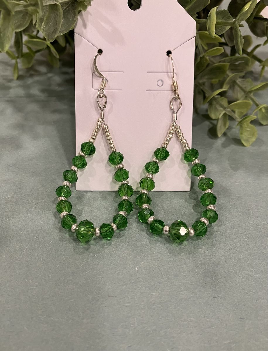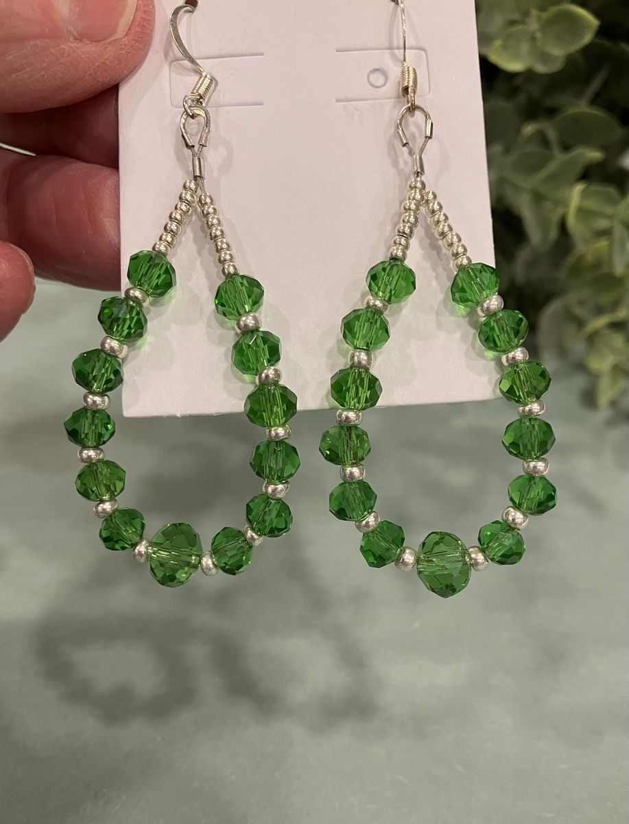VenmoHandmade emerald green crystal and silver beaded, teardrop dangle earrings. Earrings are 1.75 inches in length. Ear wires are silver plated. Gift box included. Local meetup or can mail with ship fee.
