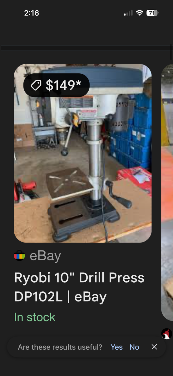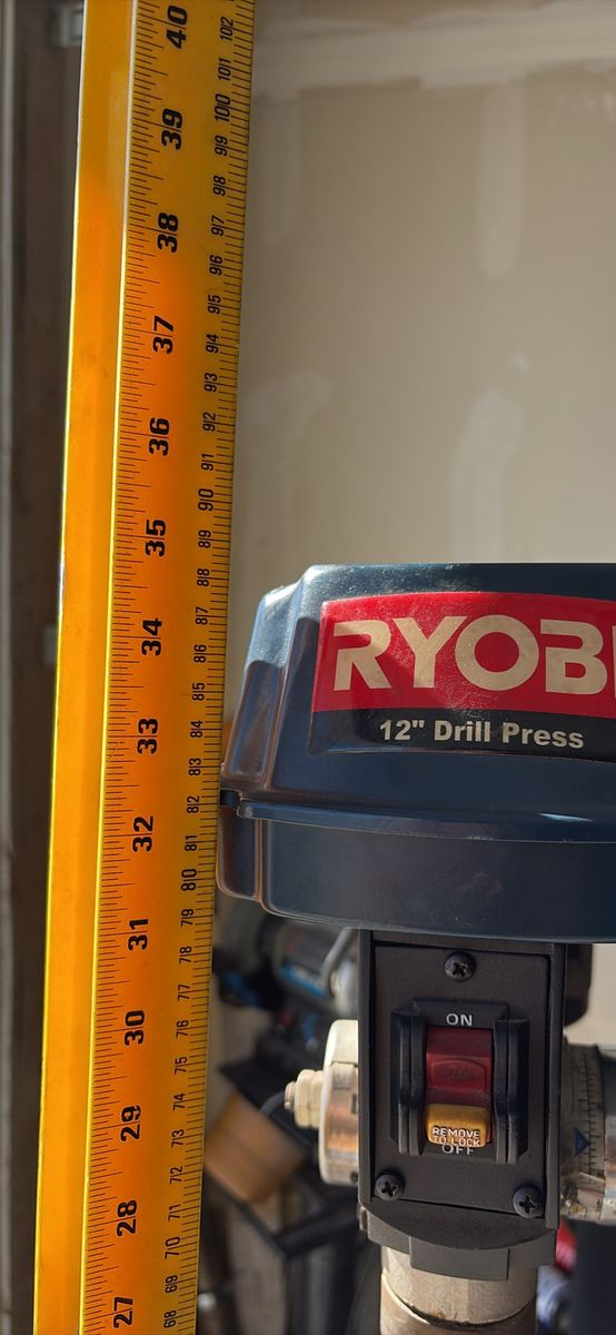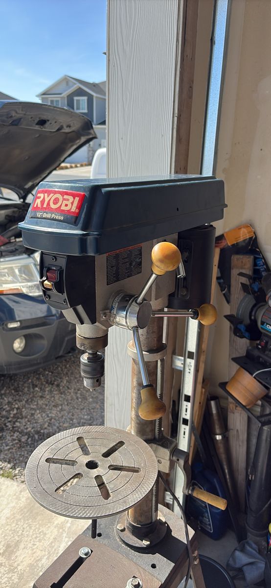 ZelleDrill Press Ryobi 12” Drill Press. Missing the drill chuck key. In good condition.