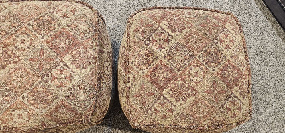 VenmoThese are a wood frame base so they don't flatten like the cheap material ones and keep the shape . Bought to tie our two leather couches together and it just cluttered the room so they've been stacked in the corner rarely being used. If you're interested in the couches and ottomans I can do a bundle