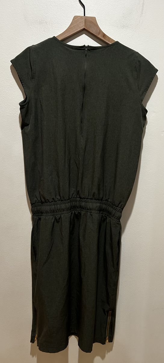 Albion Going Places Casual Dark Forest Green Dress with Pockets and Waist Tie - Women’s Size XS - the perfect sporty, lightweight, casual spring or summer dress - with gold zippers on the sides - great condition - pre-owned.