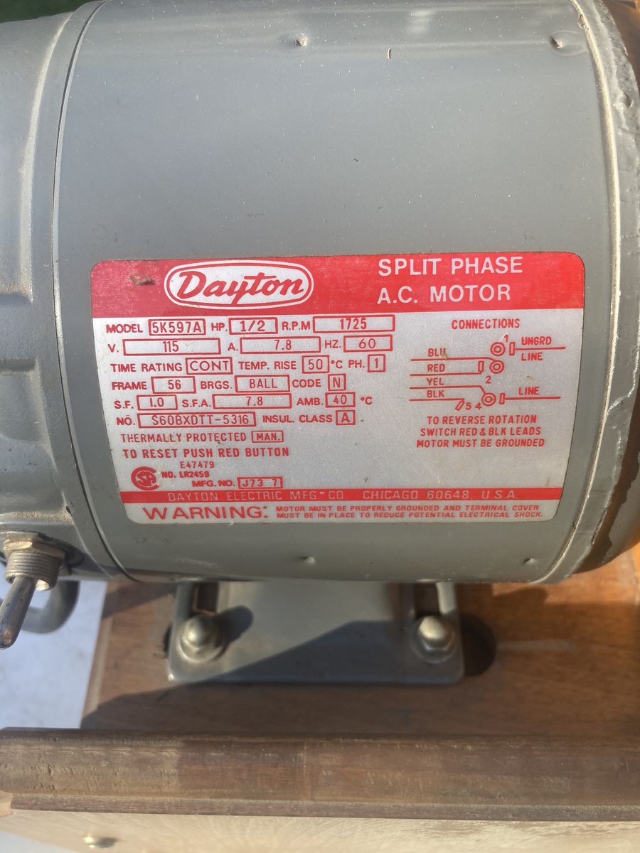 Dayton Electric Motor 1/2 HP, Model 5K597A.