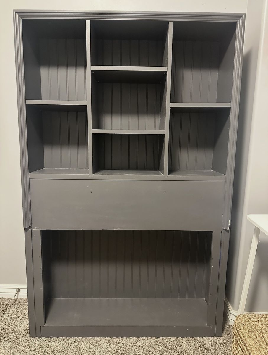 VenmoThis handcrafted bed can be set up two different ways: use the captain’s headboard as a separate display/book case or as the headboard. The basic headboard shown in photos is easily removable.