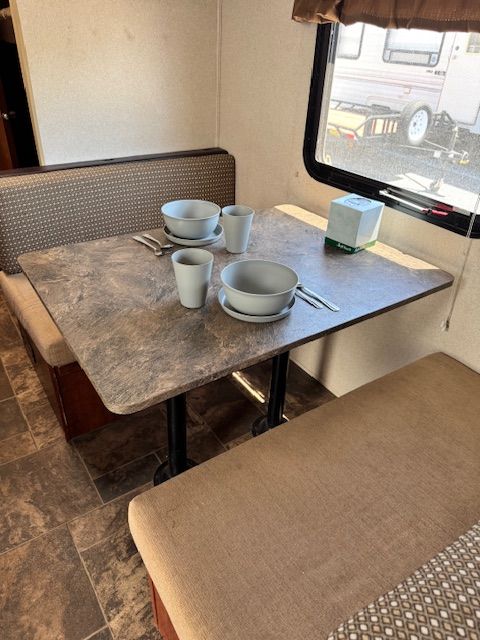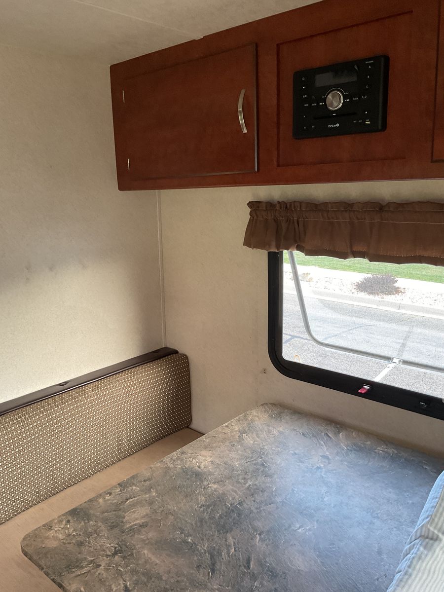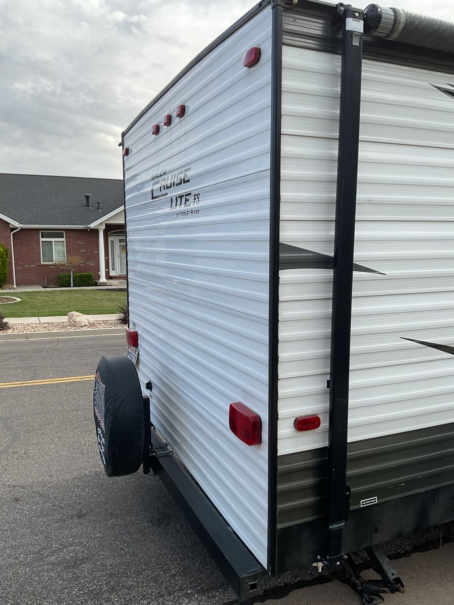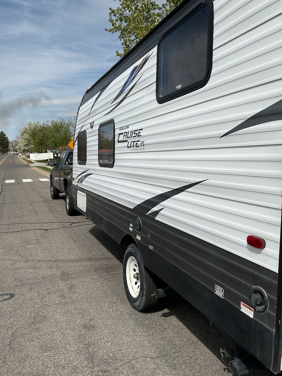 10,500 or BEST OFFER. 2017 FOREST RIVER CRUISE LITE FS 18’ BOX 21’ BUMPER TO HITCH TRAVEL TRAILER ACCORDING TO AMERICA FIRST CREDIT UNION TRAILER IS VALUED AT $15, 850 TRAILER IS IN GREAT CONDITION EVERYTHING WORKS. GREAT TRAILER FOR SMALL FAMILY. TRAILER WAS BOUGHT JUNE 2024 USED 2 TIMES BUT DUE TO FINANCIAL STRUGGLES I NEED TO SELL THIS TRAILER. ACCESSORIES ADDED TO TRAILER ARE: SET OF 3 EACH SPOONS, FORKS, KNIFES * PAPER PLATES *PLASTIC CUPS/SMALL PLATES/BOWLS * DISHTOWELS * DISH SOAP * DISH SCRUB BRUSH * DISH RAGS * DISH DRYING MAT * PAPER TOWELS * SMALL GARBAGE CAN WITH 4- GAL SACKS * KITCHEN RUG * TOILET RUG * 2 BRAND NEW BATH TOWELS * THESE SUPPLIES ARE READY FOR YOU TO USE ON YOUR FIRST CAMP TRIP. THE FRONT BED HOUSE BEEN MADE WITH BRAND NEW SHEETS, 2 PILLOWS W/PLASTIC STILL ON AND PILLOWCASE, AND A BLANKET ALL BRAND NEW NEVER USED. TRAILER AMENITIES INCLUDE: SLEEPS 5 WITH FRONT QUEEN BED BY DOOR KITCHEN TABLE MAKES DOWN TO BED, ALSO HAS STORAGE AREA UNDER BENCH SEATS BUNK BEDS IN BACK KITCHEN AREA WITH SINK 2 BURNER STOVE, FRIDGE WITH FREEZER, MICROWAVE CUPBOARD STORAGE ABOVE STOVE AND 2 CUPBOARDS BY STOVE CABINETS ABOVE KITCHEN TABLE OUTSIDE STORAGE DOOR FOR STORAGE UNDERNEATH QUEEN BED CAN ALSO ACCESS STORAGE UNDERNEATH MATTRESS. BATHROOM TUB WITH SHOWER AND TOILET INCLUDES A SAMSUNG TV ALREADY MOUNTED ON WALL AM/FM RADIO WITH CD PLAYER BRAND NEW PROPRANE TANK 2024 USED ONLY 2 TIMES LAST SEASON 2 -1-YEAR-OLD BATTERIES 12V DEEP CYCLE BRAND NEW SEWER HOSE IN BOX IN FRONT STORAGE CUPBOARD WITH EXTRA LONG SEWER HOSE STORED IN BACK BUMPER BRAND NEW TIRES 350 MILES ON THEM