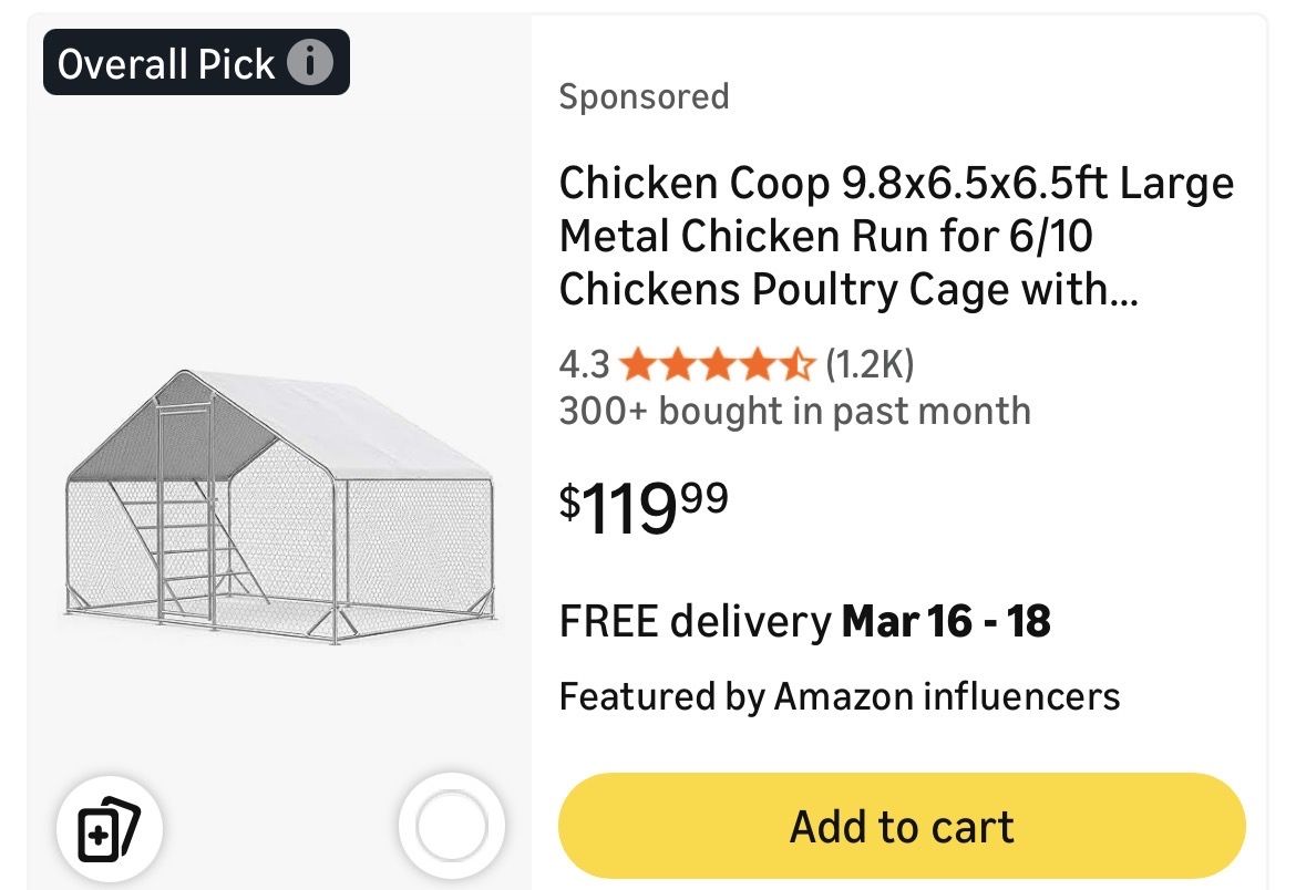 VenmoThe 1 room chicken coop size is 9.8' L×6.5'W× 6.5'H. Featuring a heavy steel frame and full covrage PVC coated wire mesh that is too solid and durable to damage. Lockable steel door with a latch and steel wire ties for extra safety. 🦆Waterproof & UV Protection cover:This waterproof cover fits our cage perfectly. Providing for full protection from sun, rain, snow. The roof slope allows for water, debris and light snow to run off instead of accumulating on the roof. Convenient & Safety Lockable Door:This chicken run for yard with cover is designed with a firm gate, reinforced door, and lock function for easy access in and out. The narrowed gap to avoid chickens escaping and wild animals entering. Easy Installation:We are equipped with detailed installation instructions. We optimized every connection part for this poultry cage, this is the most difficult step during installation, but we guarantee the quality of these connecting parts, this greatly saves installation time and energy. Not designed to withstand large predators such as bears