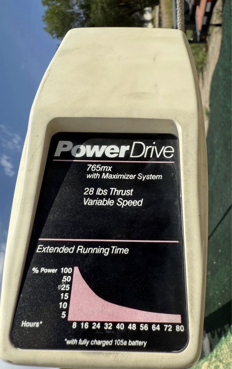 28 Lbs. Variable speed trolling motor wired to the back to control speed and direction.