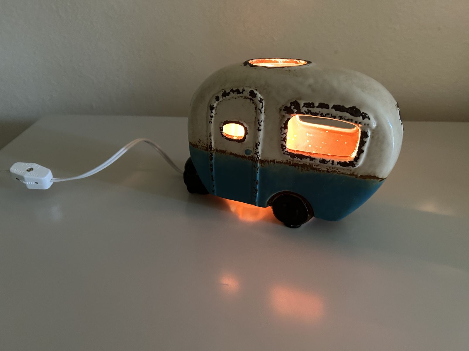 Working, like new retro camper night light. Dimensions: 7.5" x 3" x 5.5 Inches