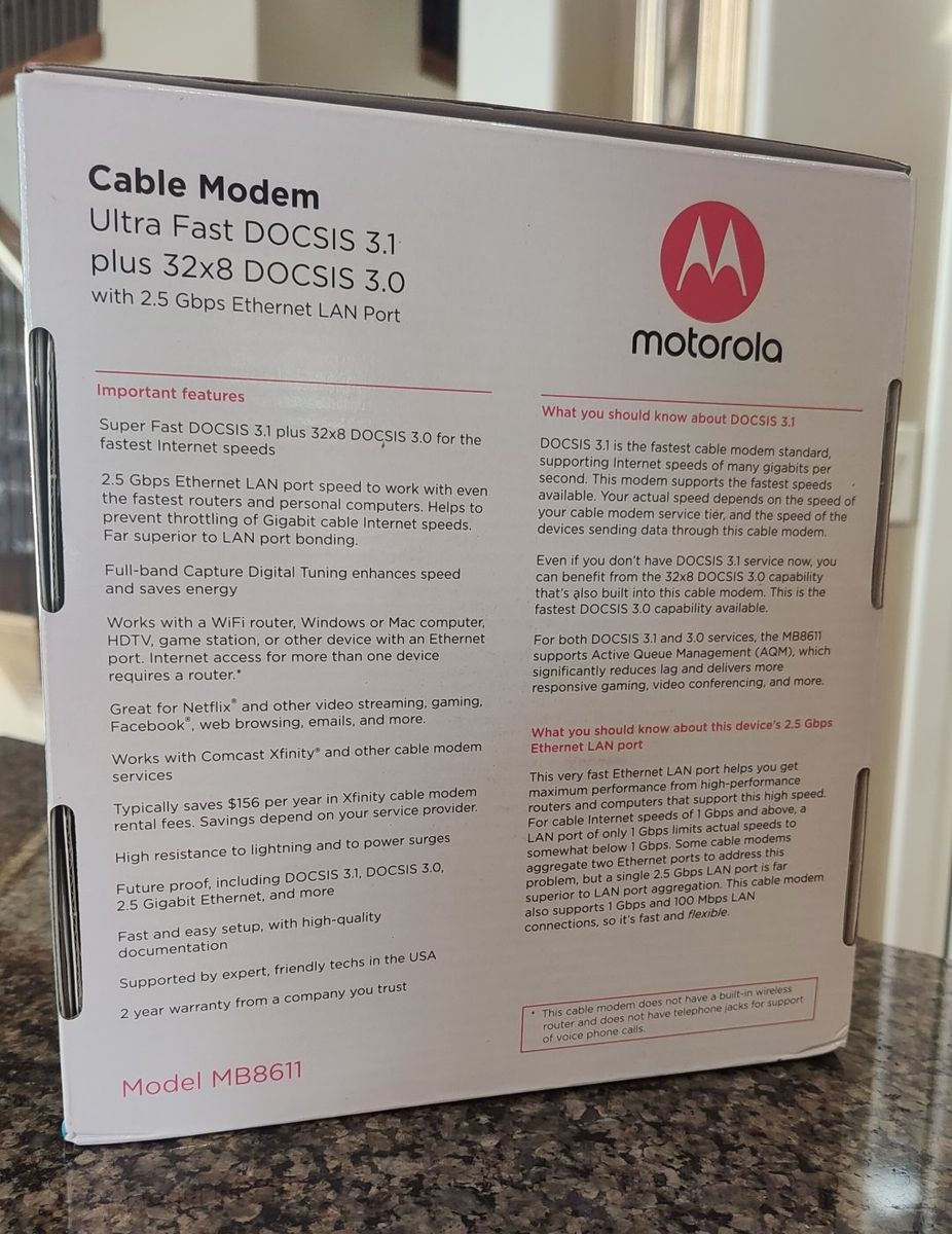 PayPalStop paying Xfinity for a cable modem, buy this super fast one that's like new in its original packaging instead. Ultra fast DOCSIS 3.1 Plus 32x8 DOCSIS 3.0 Protocol and a 2.5Gbps Ethernet LAN Port with certification for Xfinity makes this an easy no brainer upgrade to boost connection speeds in your home or office. Works and looks like new, only reason we are getting rid of it is that our neighborhood just got fiber service.