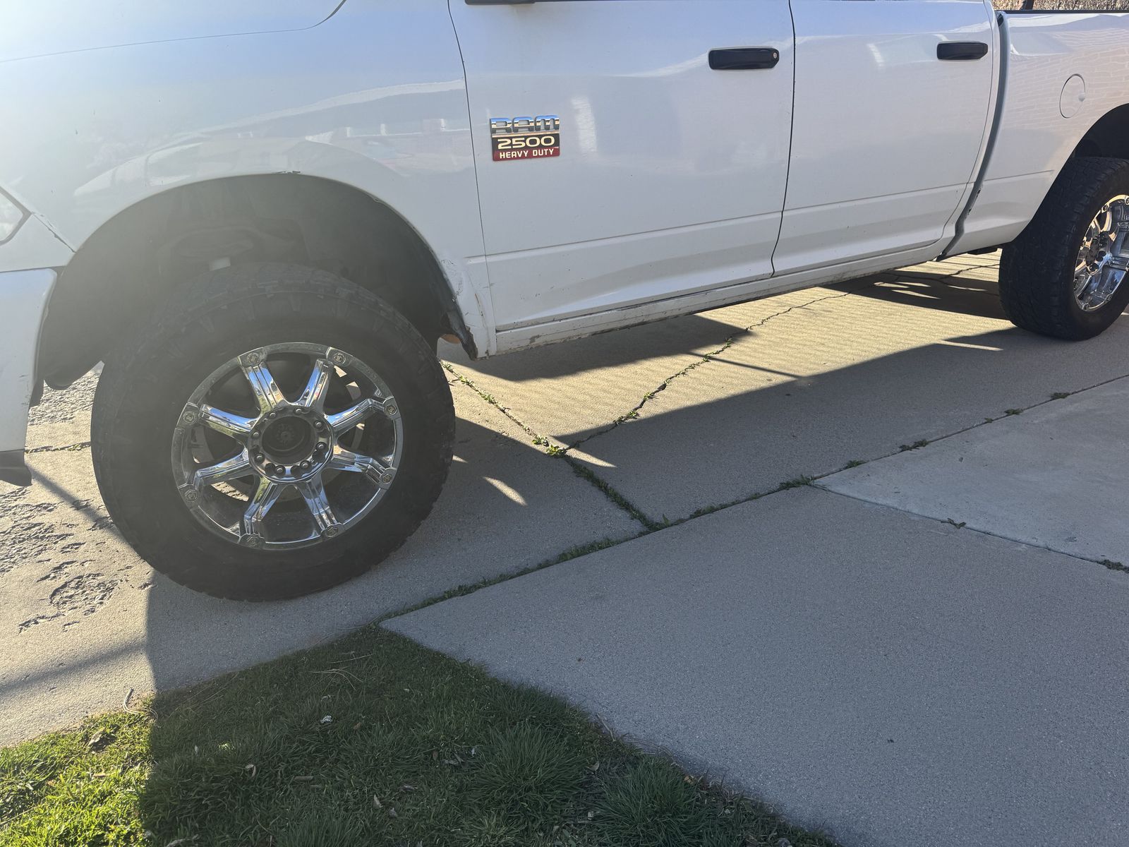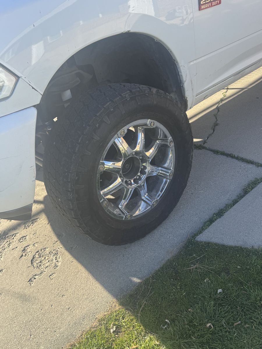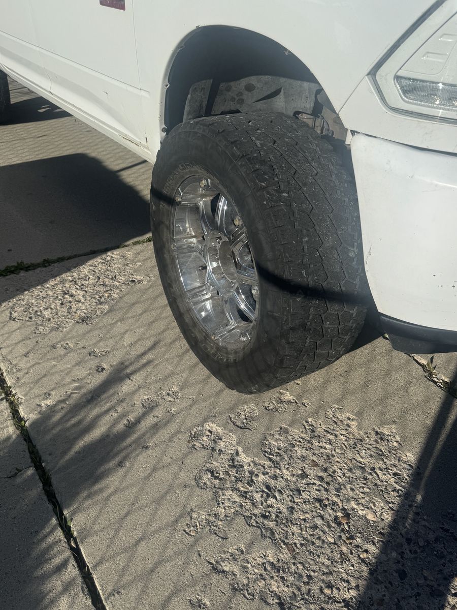 Venmo8x6.5 not sure the other lug pattern, they are dual drilled. Sitting on 35s. Tires need replaced. But will still get by. All hold air. Will trade for stock ram wheels. $100