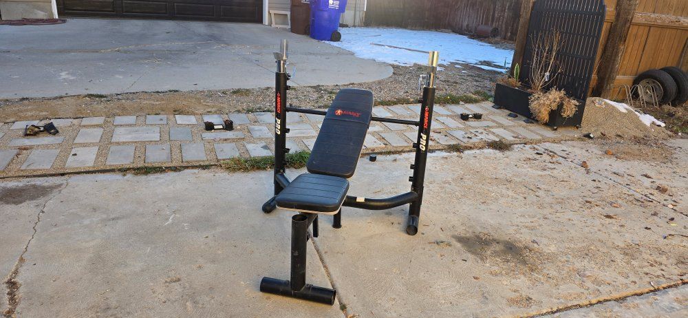 Multi-Position Back Pad: The bench is adjustable, allowing you to perform flat, incline, and decline chest presses. Olympic Sized: The "crutches" (the uprights) are spaced wide enough to accommodate a 7-foot Olympic barbell.