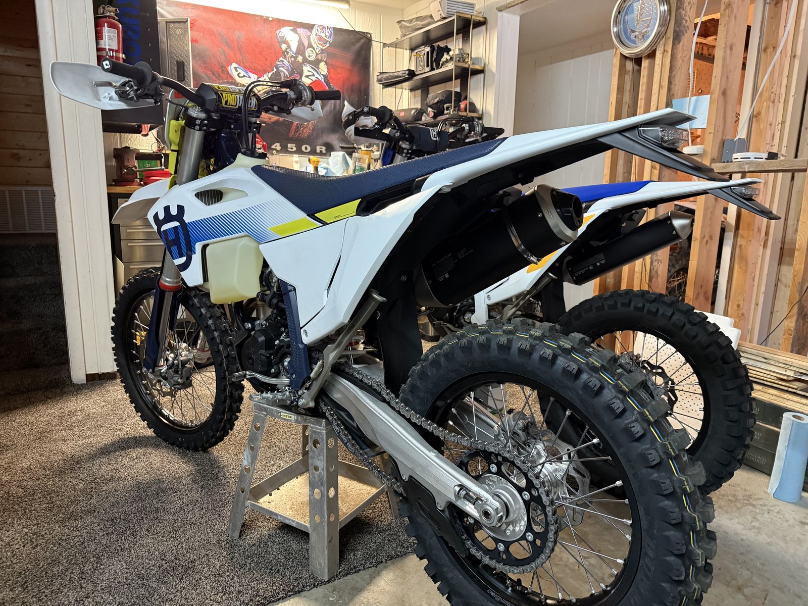 It has only 12.6 hours on it. I rode mostly 2 track for the first 5 hours for break in and then changed the oil. I also flushed the brakes with motul 660. I added a factory white rear fender. The wheels and tires are brand new.. Zero use. I also added a linkage guard to the factory skid plate.