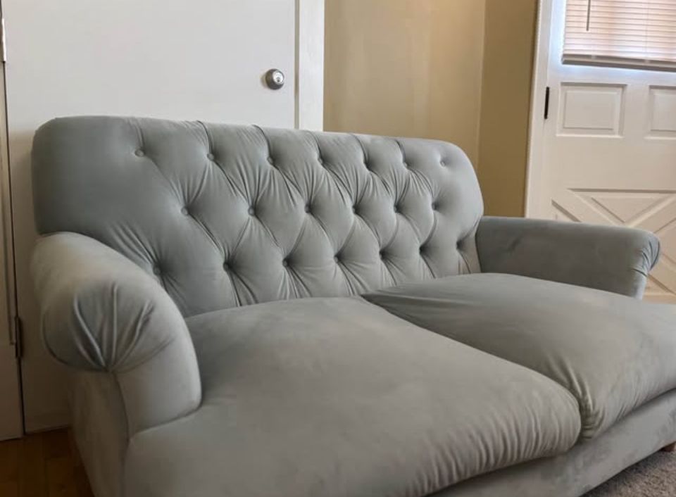 VenmoThis charming, dusty blue loveseat is so comfortable and is in great condition!