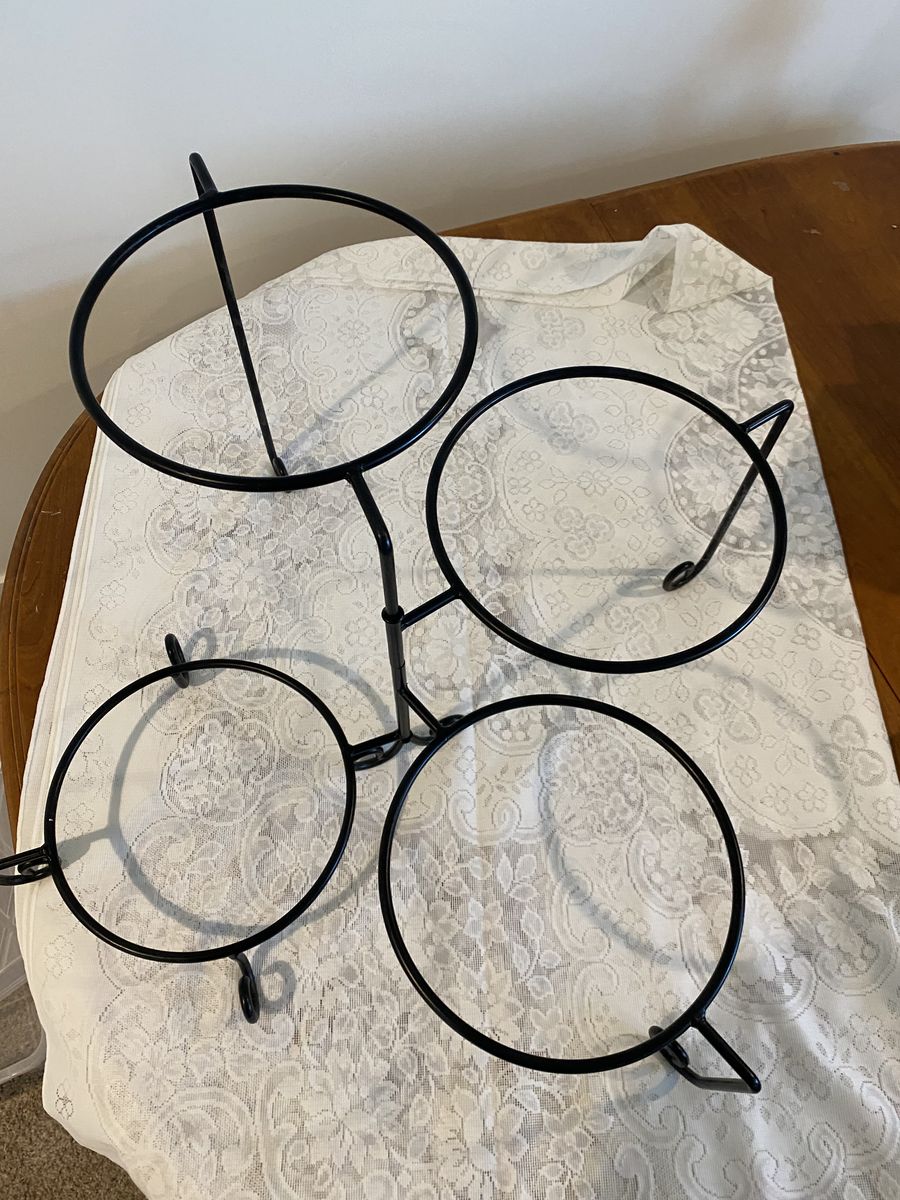 VenmoServing stand holds 4 plates (plates not included). Holds plates 9-11 inches. Flat black stand. Gently used. 1 stand for $10 or 2 for $15.
