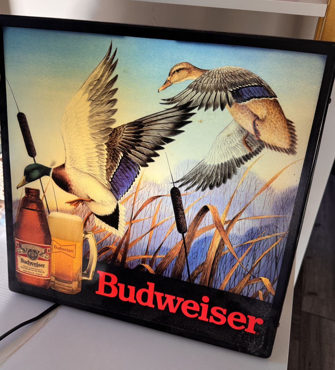 VenmoVintage Budweiser Mallard Ducks Neo -Neon Beer light up sign in working conditionneith original plug.