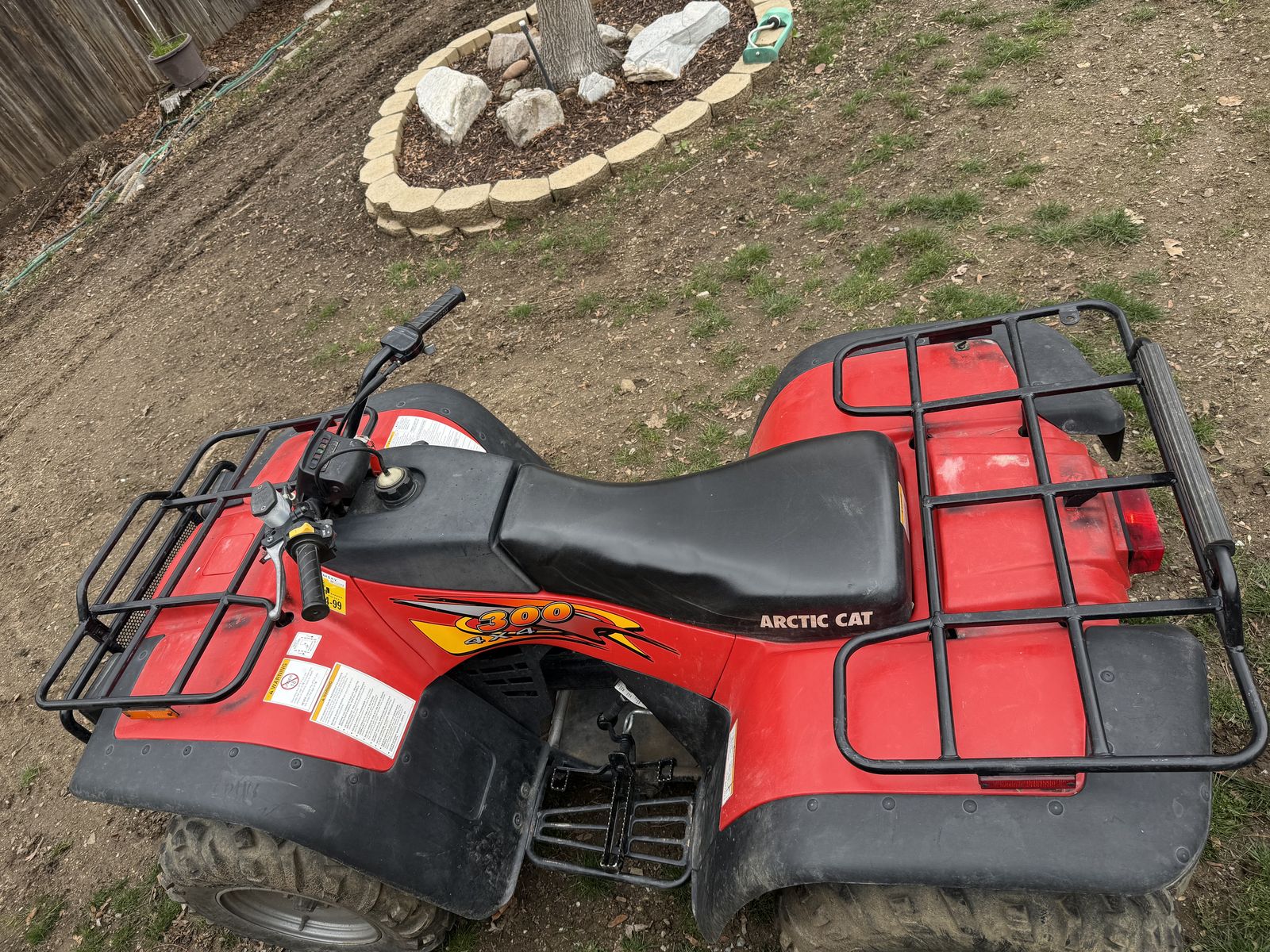 On offer here is my arctic cat 300 4x4 atv. This is the model with selectable high low and ultra low range, selectable 2/4wd, and a semi automatic 5 speed with reverse gear. Front and rear racks for utility and a hitch mount. Workhorse but also comfy with 4 wheel independent suspension. Current condition: the unsure and rides great but needs repair on the charging system. Unit is available to show and ride both but would not be considered ready for full fun until the charge issue is resolved. Great atv and title in hand.