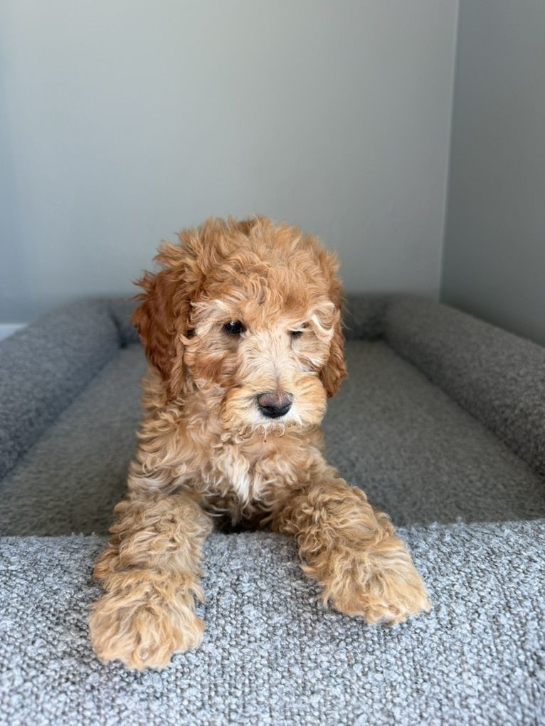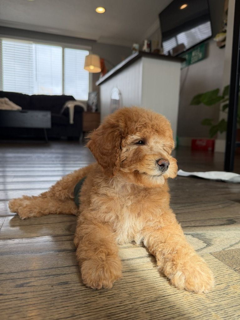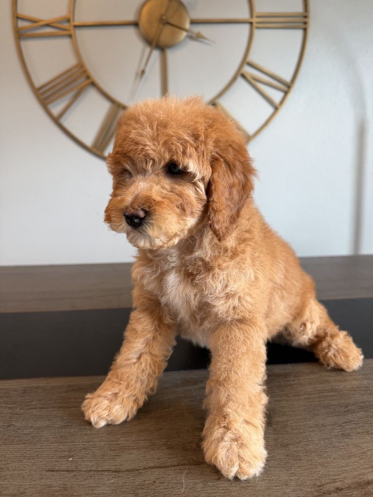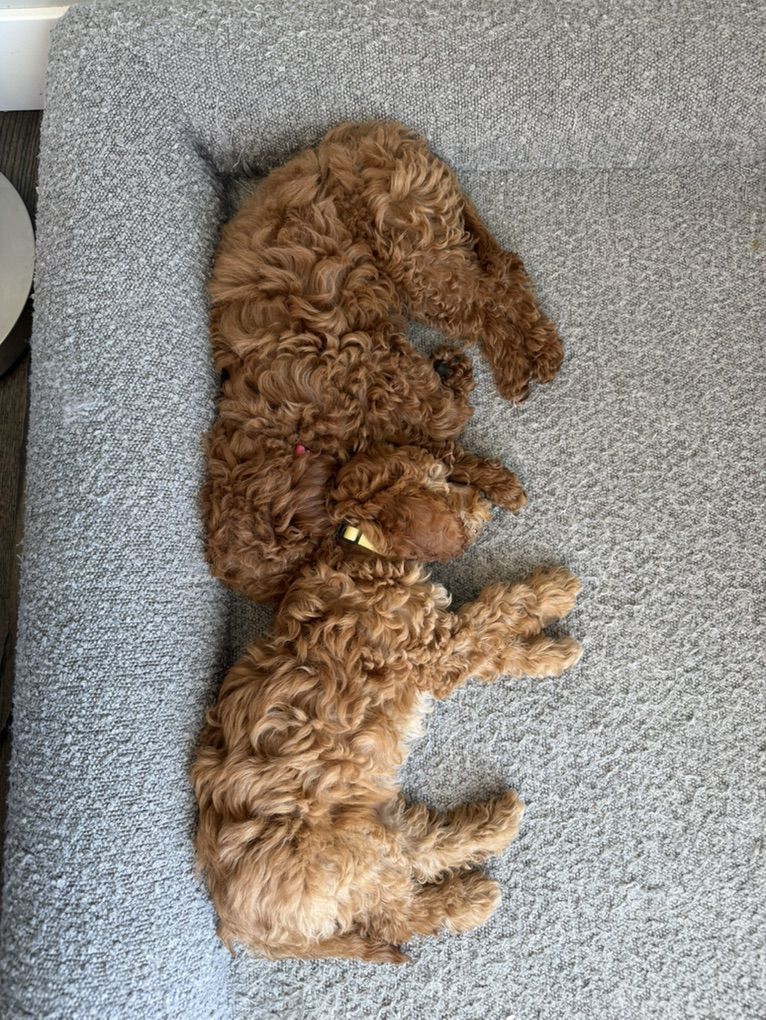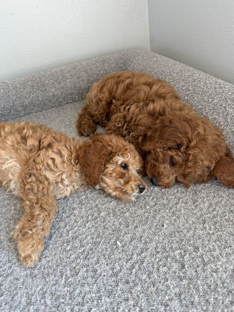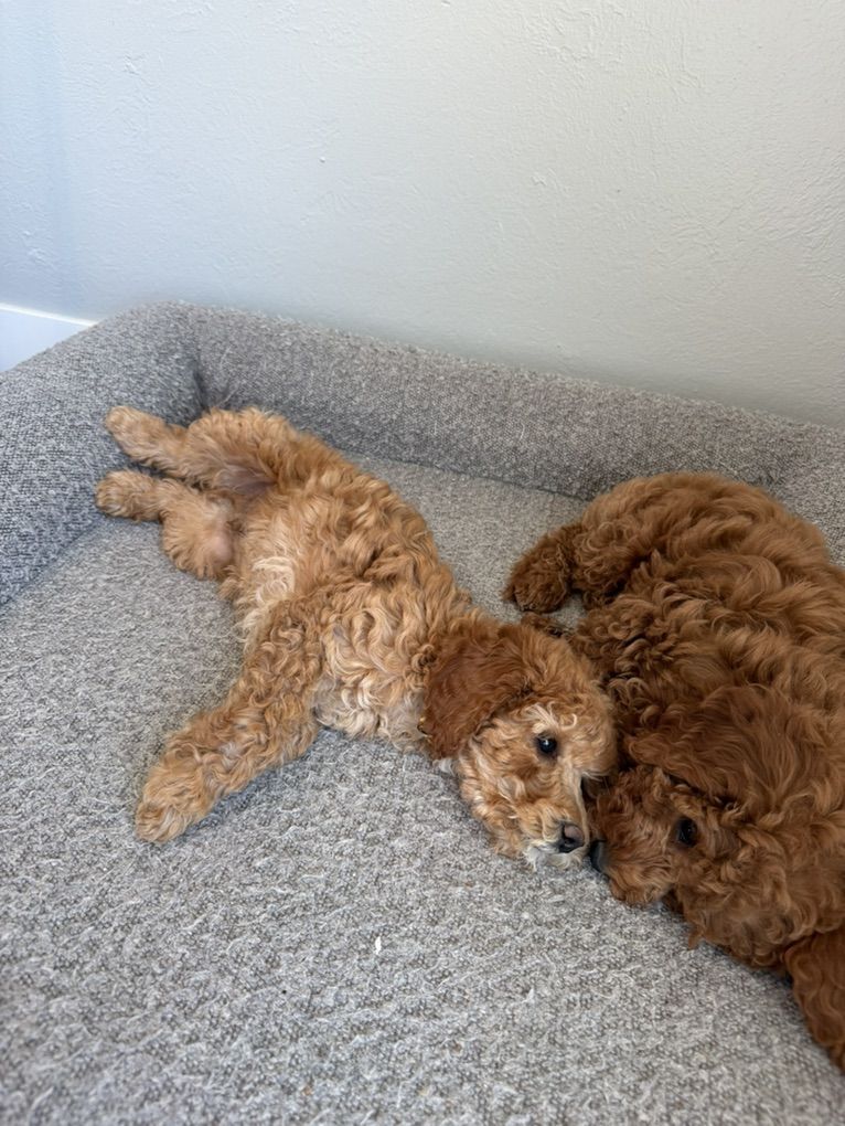 These little Goldendoodles will be about 12-15 pounds full grown with mom being 10 pounds and dad 18! We have 2 boys