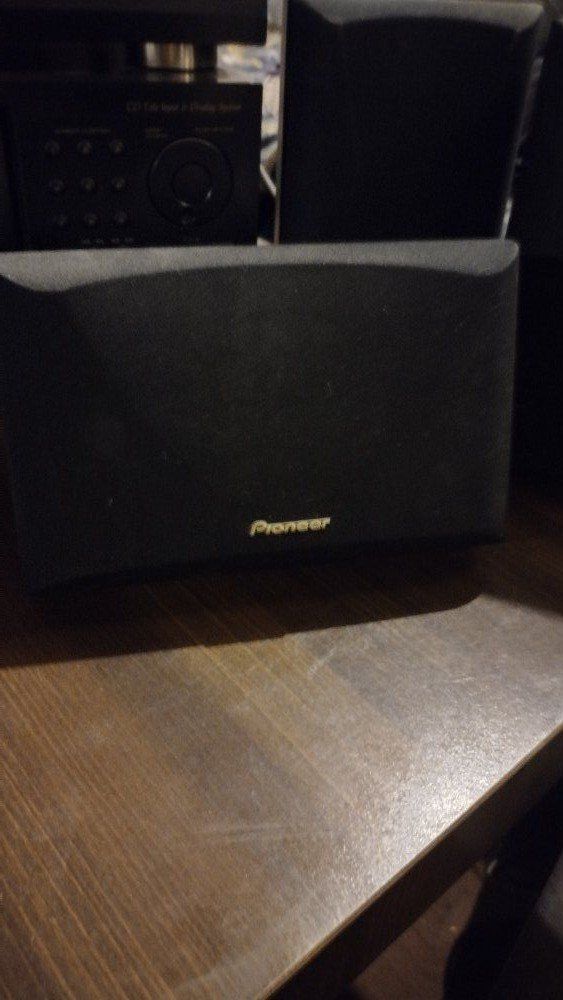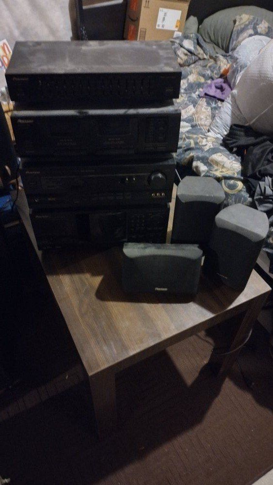 VenmoI have a Pioneer home theater surround system for sale! This has a huge CD changer, I think it holds in the hundreds! This includes nice tall pioneer speakers, surround sound speakers, a dual cassette player, an equalizer and all the hookups! This also includes the entertainment center for it all!!! See pictures for measurements and the different models of the systems. All original Pioneer!