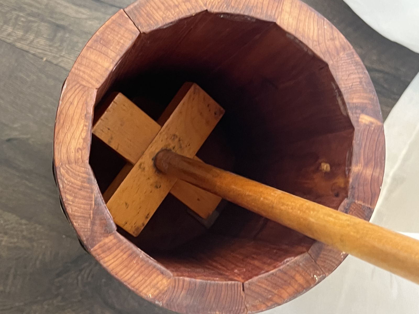 VenmoWood churn with metal hoops and a cross-shaped dasher. Clean and in great condition. 39 tall to top of handle. Pick up in Herriman. Pet and smoke free home. Cash or Venmo. $85. listed for a client