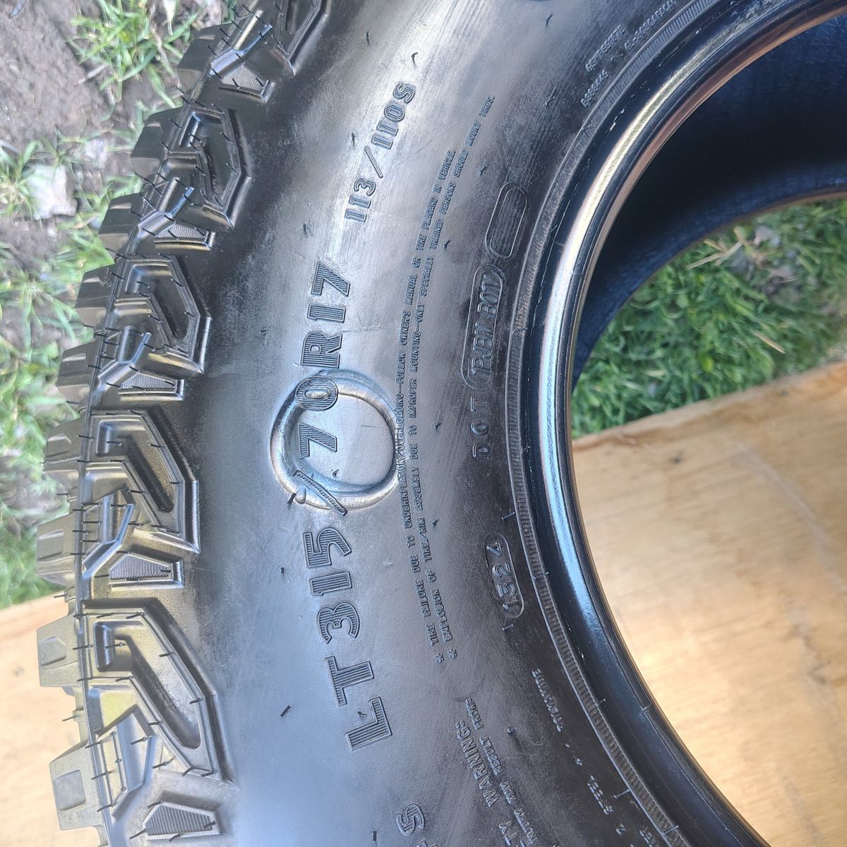 Venmo1 single tire has full tread. Load range c no plugs or patches originally was a spare off a bronco slight cosmetic imperfection over tire size as seen in picture other then that it's brand new.