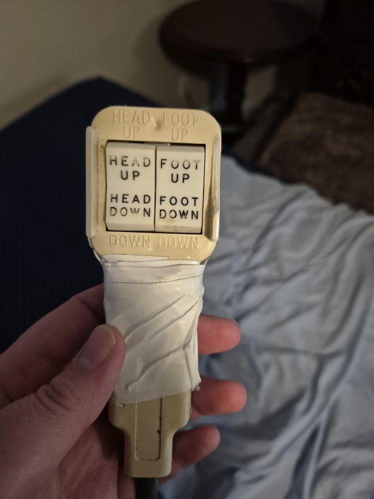 The hospital bed we've had in the living room for the last 2 years available for free. Still adjusts the head, my dad had a disease similar to dementia and broke the remote a few times so it is taped back together. the foot part is broken but it works to raise and lower the head just fine. Must pick up in lehi. size is Twin. Giving away free since my dad passed away we no longer need the bed.