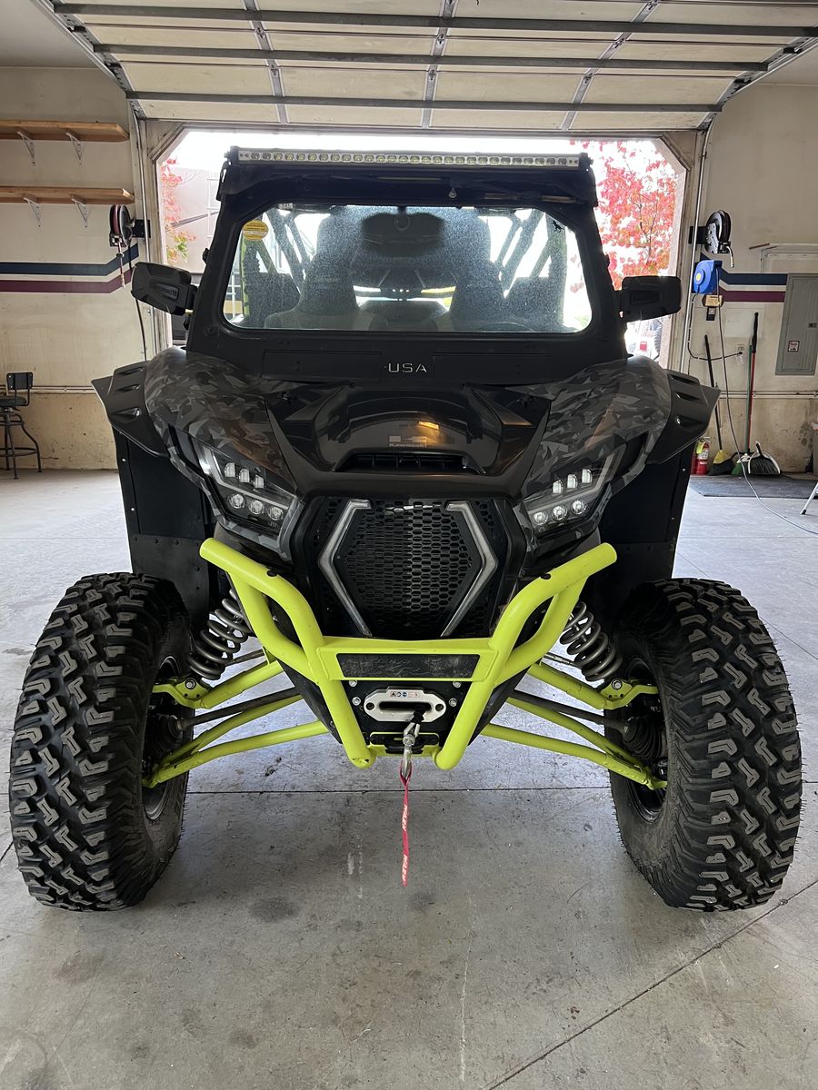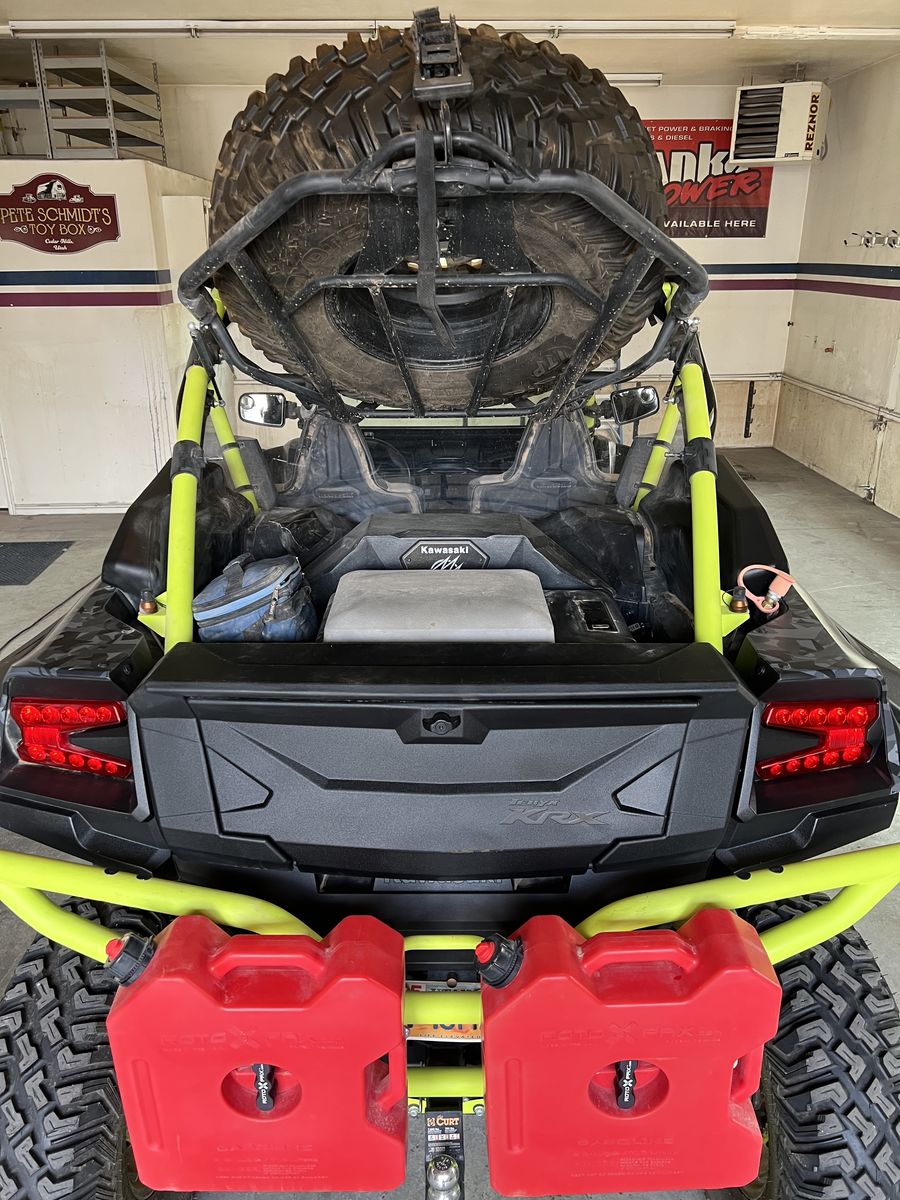 Accessories: AM/FM Bluetooth Source Unit Door Speakers Sub-Woofer Rear Pod Speakers Set USA Windshield with Large Vents Outside Wing Windows USA Mechanical Windshield Wiper Rear Panel Polycarbonate Dome Light Dash Net Tray Upper Door Set Cab Seal Kit Heater Kit Rear View Mirror (internal) Street Legal with Premium Side Mirror Kit Deluxe Turn Signal Lights Mud Flaps Finder Flares 38 Light Bar Alternator Kit 33 Tires Spare Tire Spare Tire Y-Strap Rear Cargo/Tire Rack Tail Gate Trail Box Wired for Lighted Twin Whip Antennas (manual control) Receiver Hitch Rock Slider Set Air Compressor Tire inflation kit 12volt/110 Refrigerator Heavy Duty Suspension 2-3-gallon fuel cans (mounted) Spare Drive Belt and tools Tire Jack and Repair Kit Tilted Seats Trailer