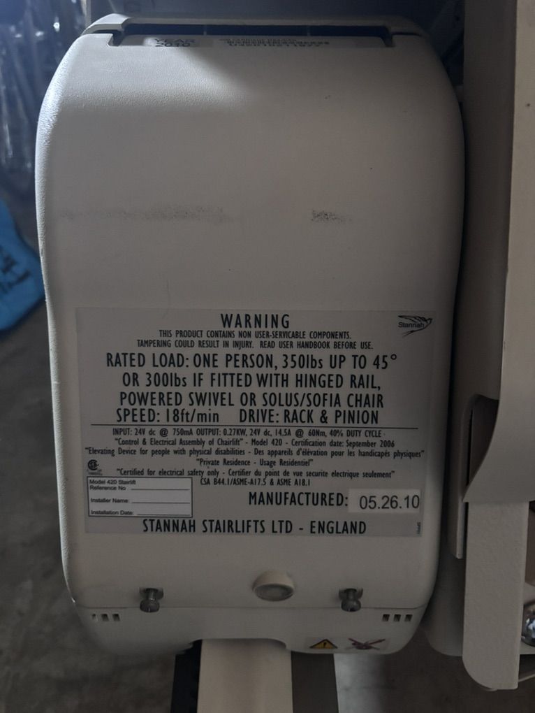 VenmoStannah Stairlift Model 420. 8ft long. Works great. New battery and charger.
