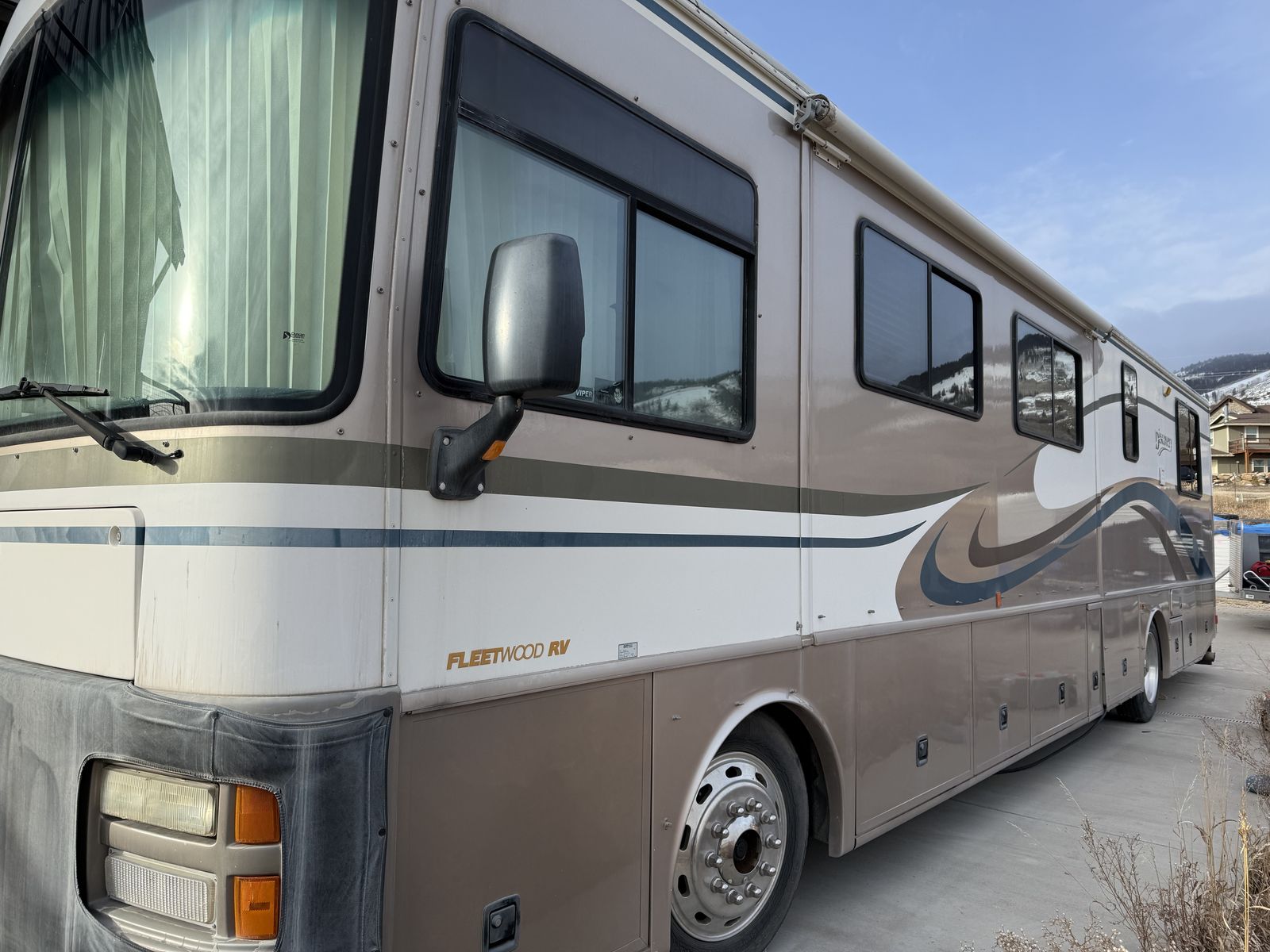 Very clean and well-maintained Fleetwood Discovery diesel pusher Built on the reliable Freightliner diesel chassis, this coach is known for its durability, power, and smooth ride compared to gas motorhomes.