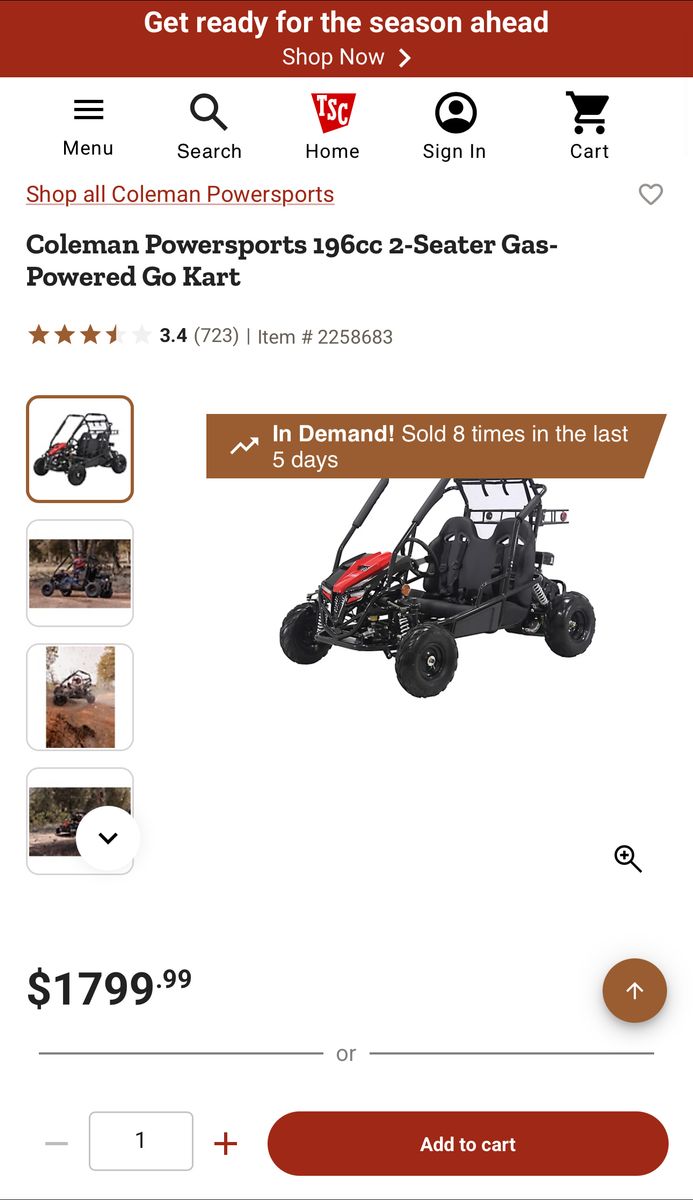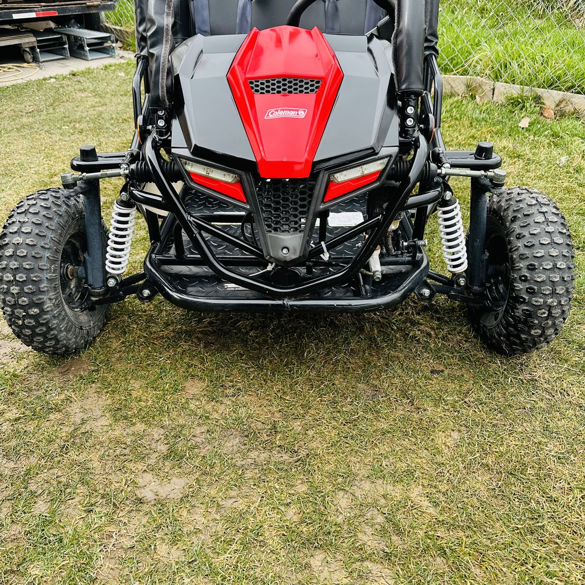 VenmoColeman go kart Has forward and reverse and excellent brakes. Front lights. Seat belts included. Adjustable seats for kids and adults. Fits 2 people. 196cc motor. Everything works great and like new condition. You’re welcome to test it. Located in West Valley