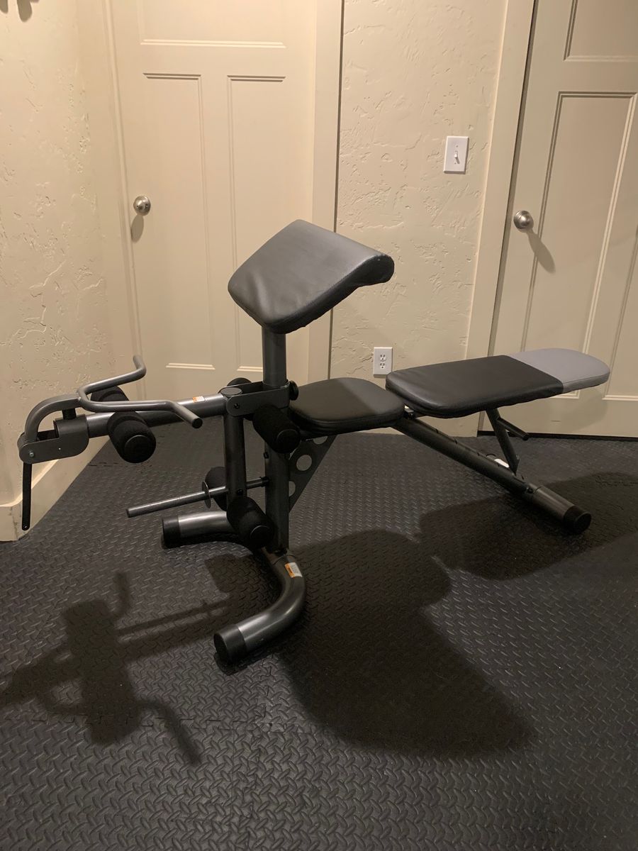 VenmoAdjustable weight bench with preacher curl pad and leg extension. In great condition, no holes and no rips anywhere. Only reason I am selling it is to make room now that I have a kid.