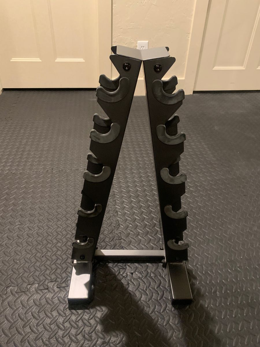 VenmoHolds 5 pair of dumbbells, looks good in your gym and saves space.