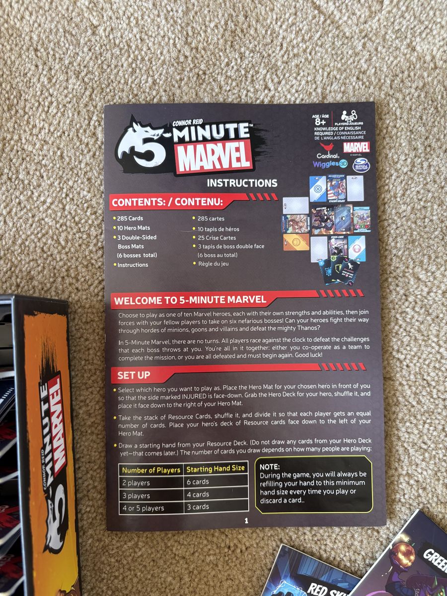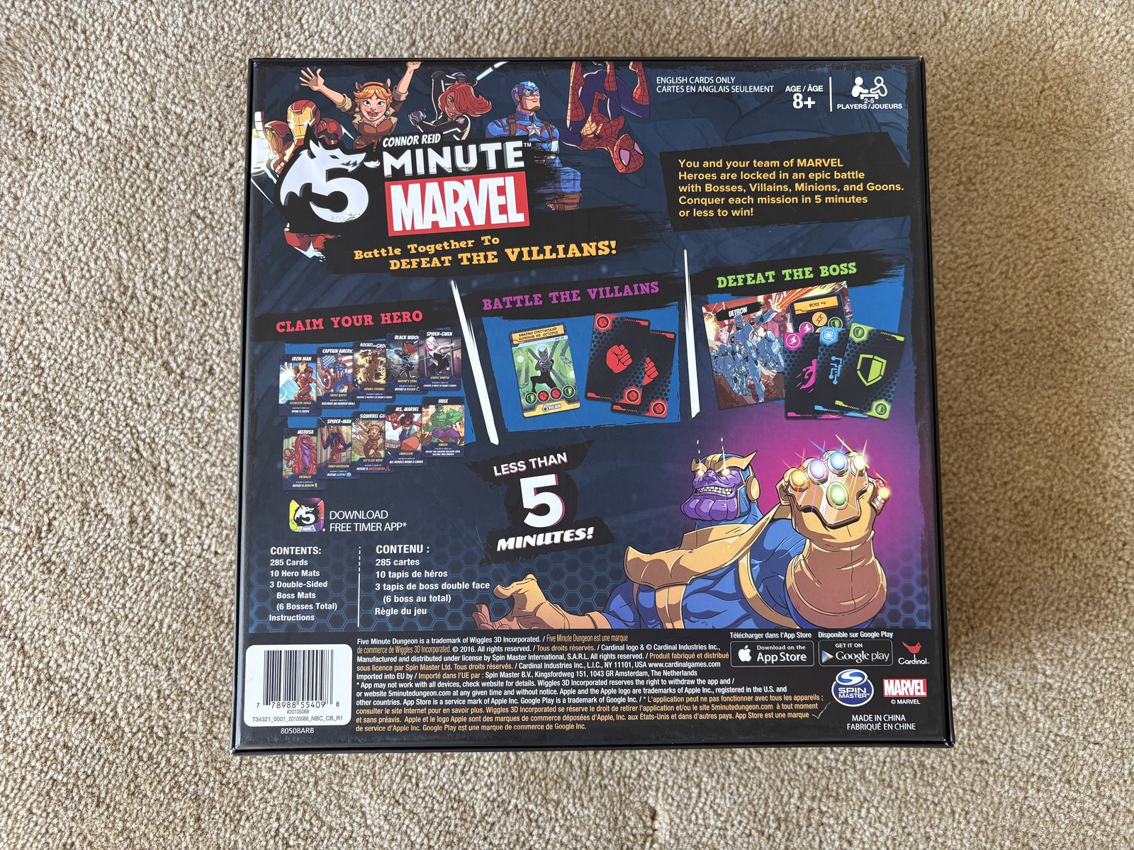 COMPLETE Connor Reid 5-Minute Marvel: A chaotic, cooperative real-time card game! Age 8+, 2-5 players. Wiggles 3D, 2016. Complete, no missing pieces. Very good condition. Text only. Cash or Venmo. Discount on multiple items.