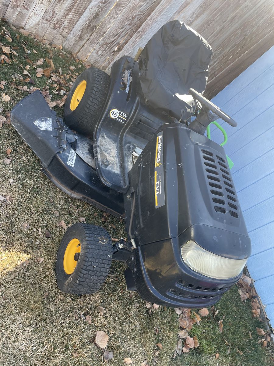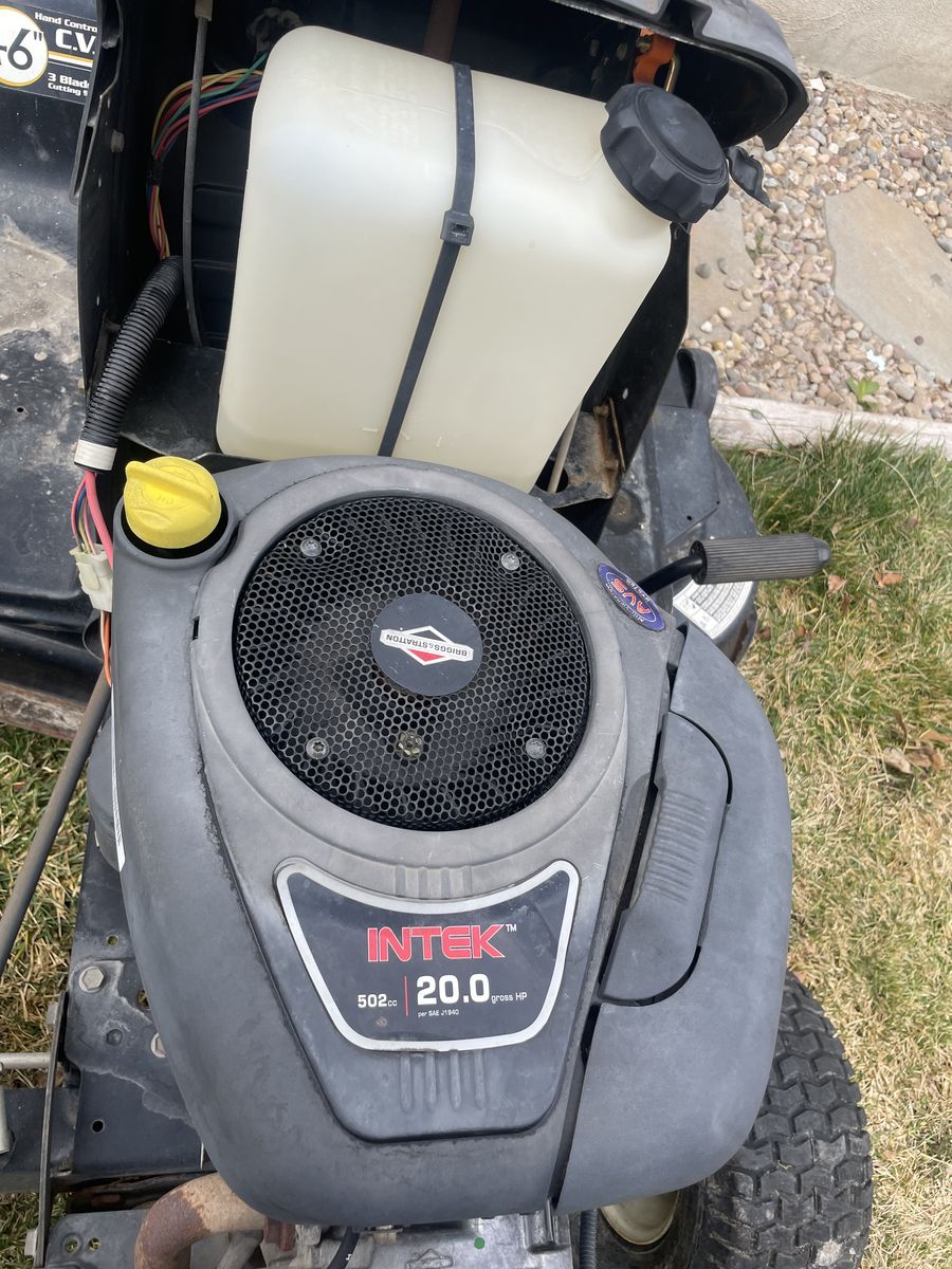 Big 46” cutting deck. New carb and battery runs and cuts well. Price firm no trades