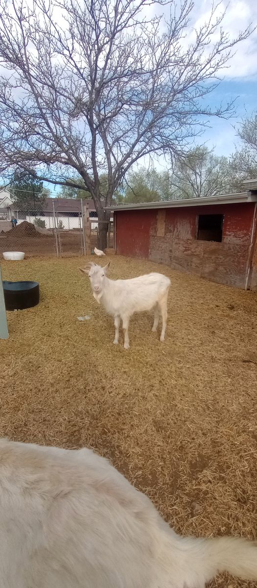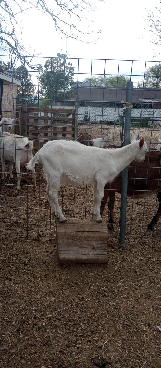 One Saanen buck that is a year old.
