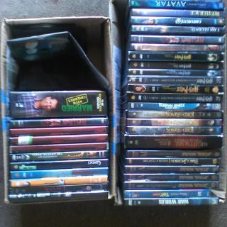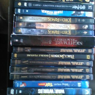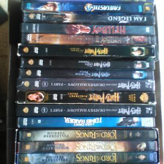 The best action sci-fi films from about 1975--2010. 4 Star Wars (original trilogy) 6 Harry Potter, boxed Lord of the Rings Trilogy, etc. A few comedies, too, like South Park and Married with Children. I'll list them alphabetically shortly... 47 are new in wrap--or as-new with cases and artwork--from a 2nd owner. The other 23, half I have in replaced cases and some artwok, but the other half in pocket sleeves. I clened the cases with Clorox rags and ran an air purifier on them for 8 hours to be clean and safe. The average used price on these handpicked classics are $3-$11, so they're worth about $550 with tax, as a convenient and rare gift. I'll let them go for one third of that, $180 (avg. $2.50 each, no tax, bundled only).