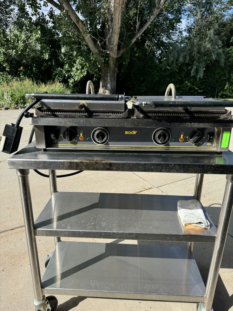 VenmoThis has a cast iron top and bottom plates Clean low use, been in storage and I decided to sell it with or without the cart. The cart is a custom with quality casters all welded frame.