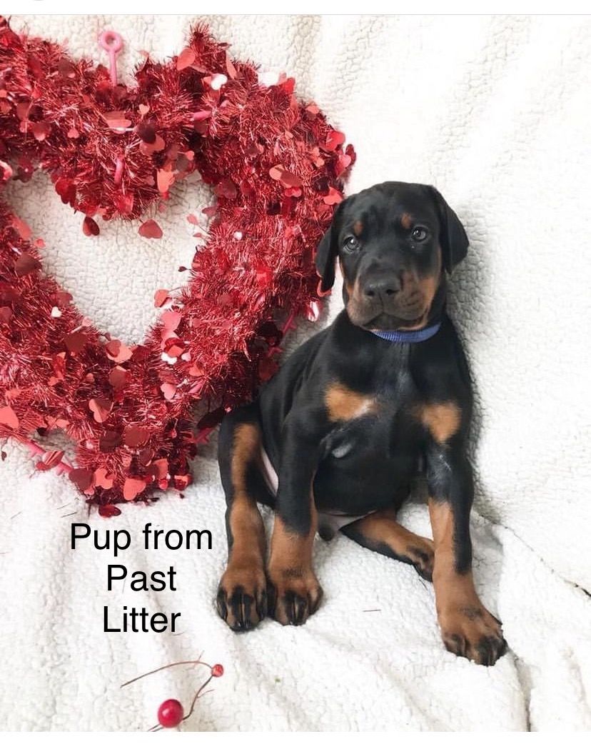 Taking deposit to reserve your puppy until it's time for her to go. Ready to go at 8 weeks old once ears cropped.