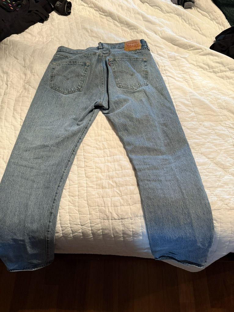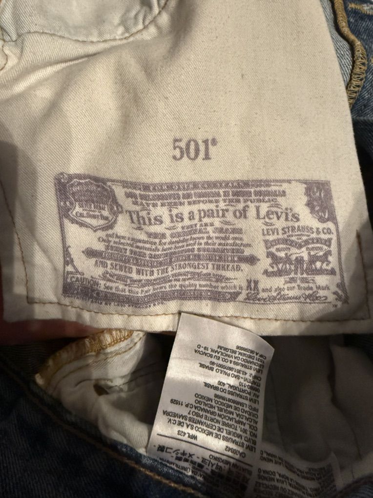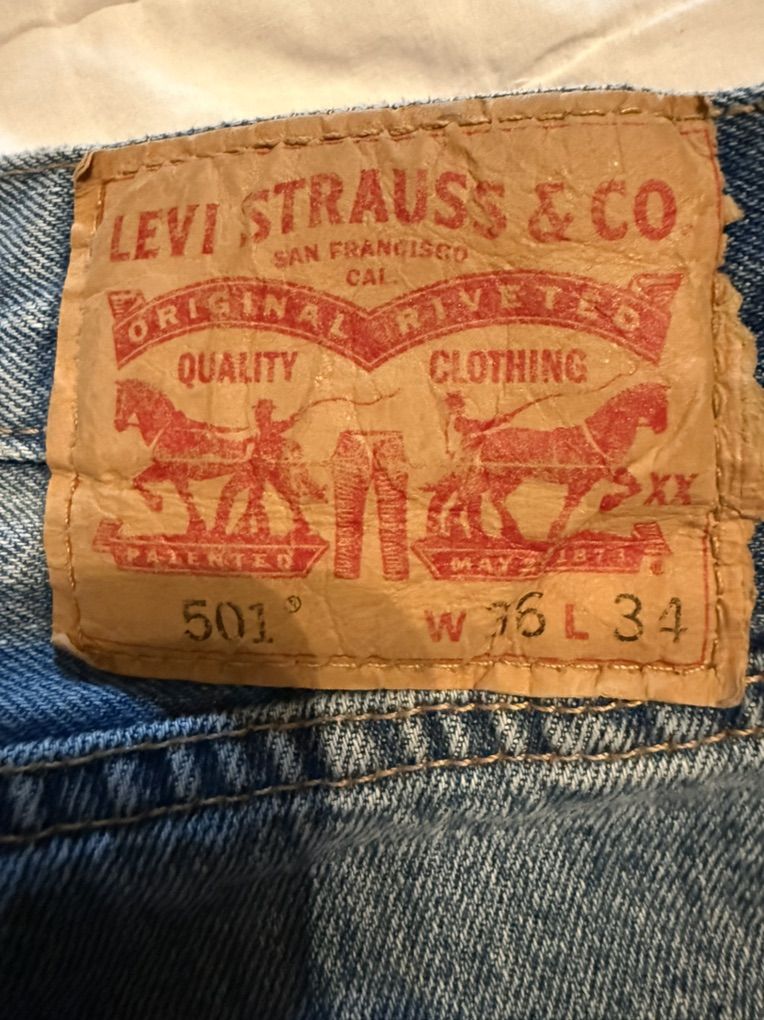 VenmoNo holes or tears probably 15 to 20 years old I’m guessing but not worn much I don’t think. They definitely are a heavier material than the Levi’s found at box stores.