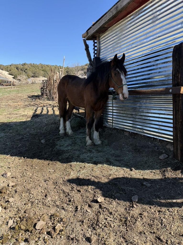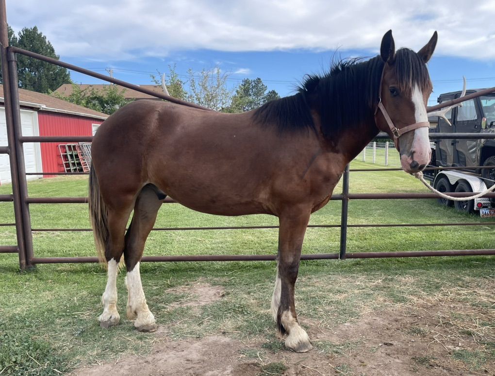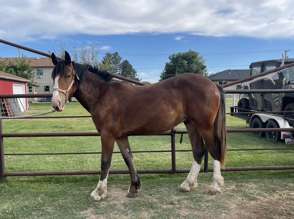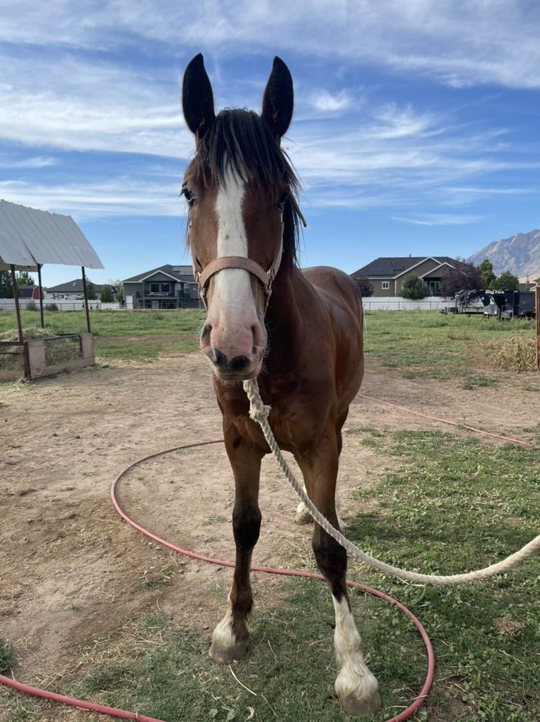 Frank is a 2 year old draft cross gelding (born 3/17/24). He stands about 16 hands. His dad is full Clydesdale, and mom is a 1/2 draft 1/2 quarter horse technically making frank a 3/4 draft.