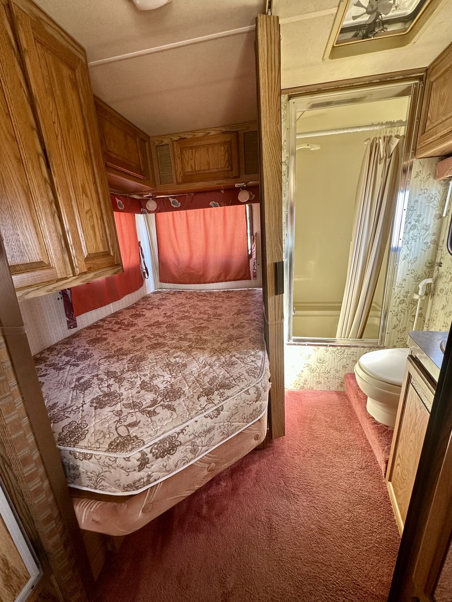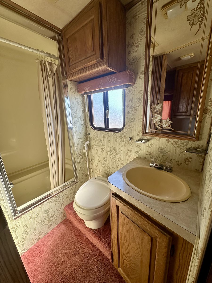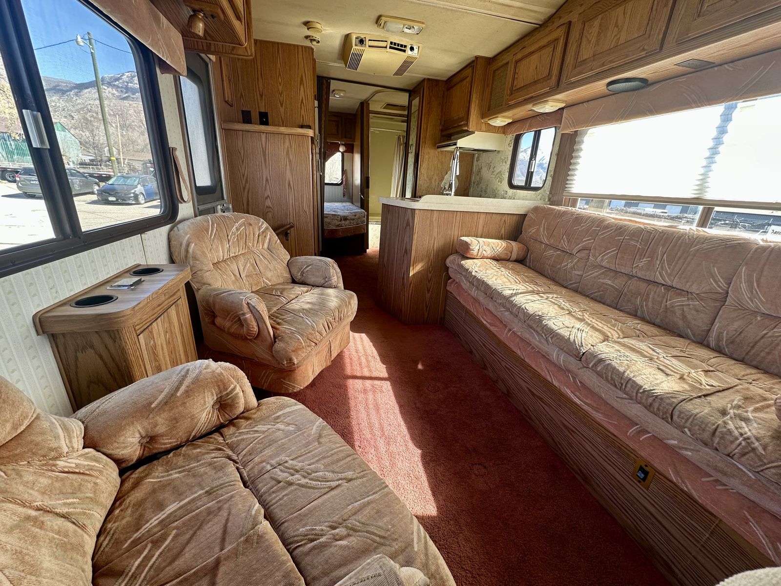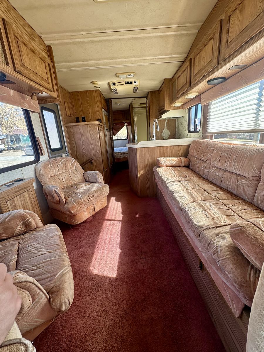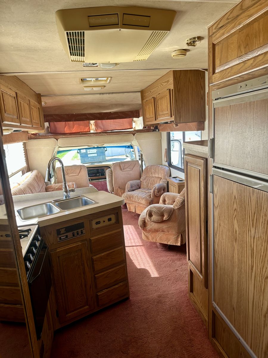 My father bought this new in 1984. It was stored inside side until 2010. We covered it in the off season after that. Everything works except the front fuel tank (needs a send unit) and the $20 plastic a roof vent that I’ll replace if I get time. Replaced the vacuum tube operated carburetor with a modern one 5 years ago. It’s a really great layout in my opinion. Has the 460 engine, adjustable air bag suspension with on board compressor, and a trailer hitch. Call or text David 801-643-0097