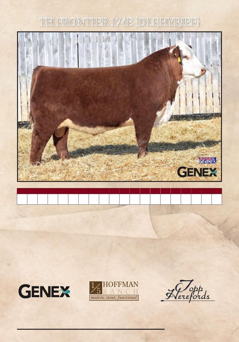 Most bulls are AI calves. #206 and #219 are perfecto 84F calves. #217 is a Frontier 174E calf. #245 is a Blueprint 183L calf. #221 is a Masterplan 183F calf. Perfecto is the ST genetics bull pictured, Frontier is the Genex bull pictured.