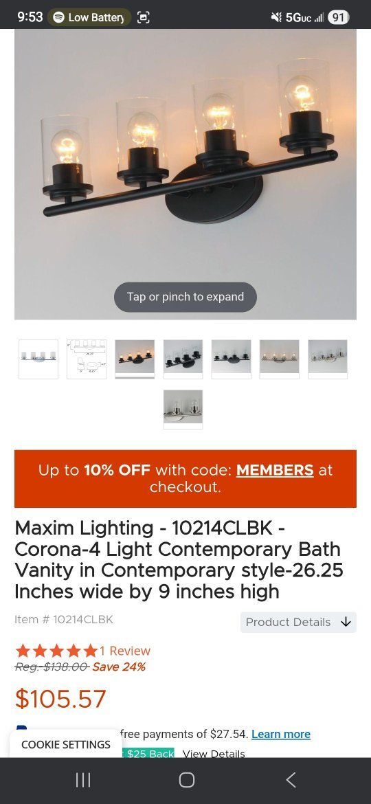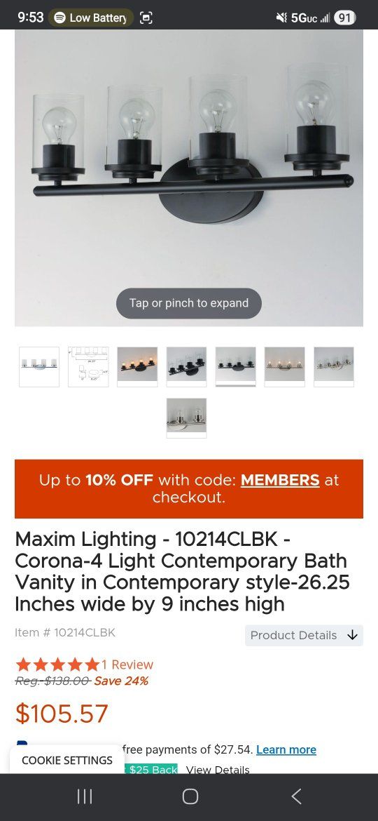 Maxim lighting 10214CLBK vanity light.