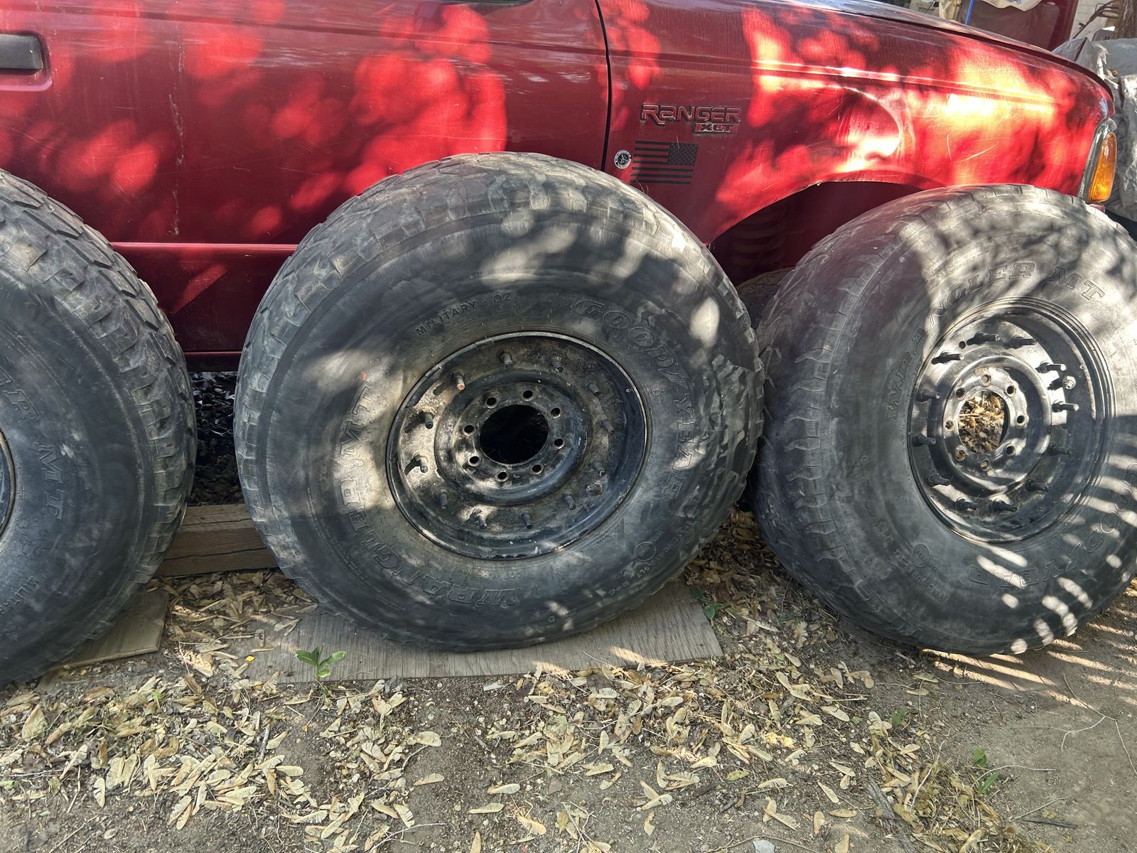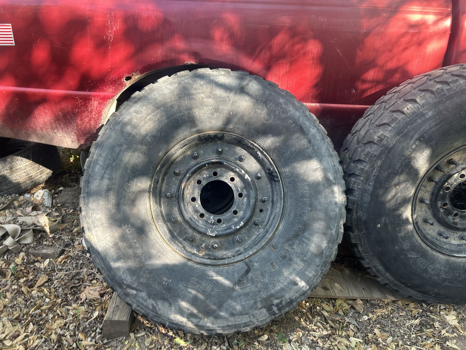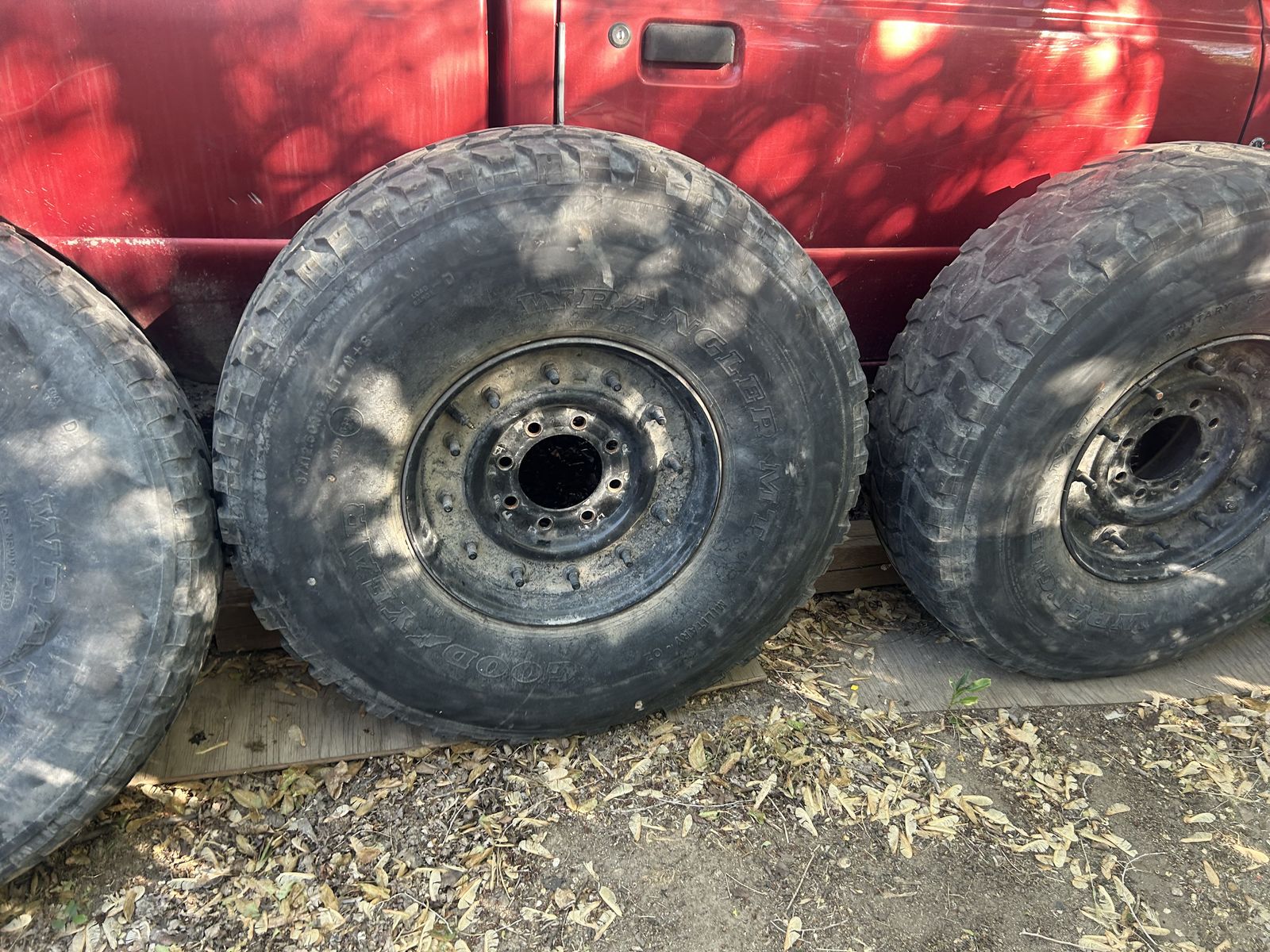 ApplePayI’ve never used them. They were given to me by my moving coworker that couldn’t take them. The Tires are 37inch Wheel size 16.5 Chevy Lug Pattern 8x6.5 (8x165.1mm) Set of 4