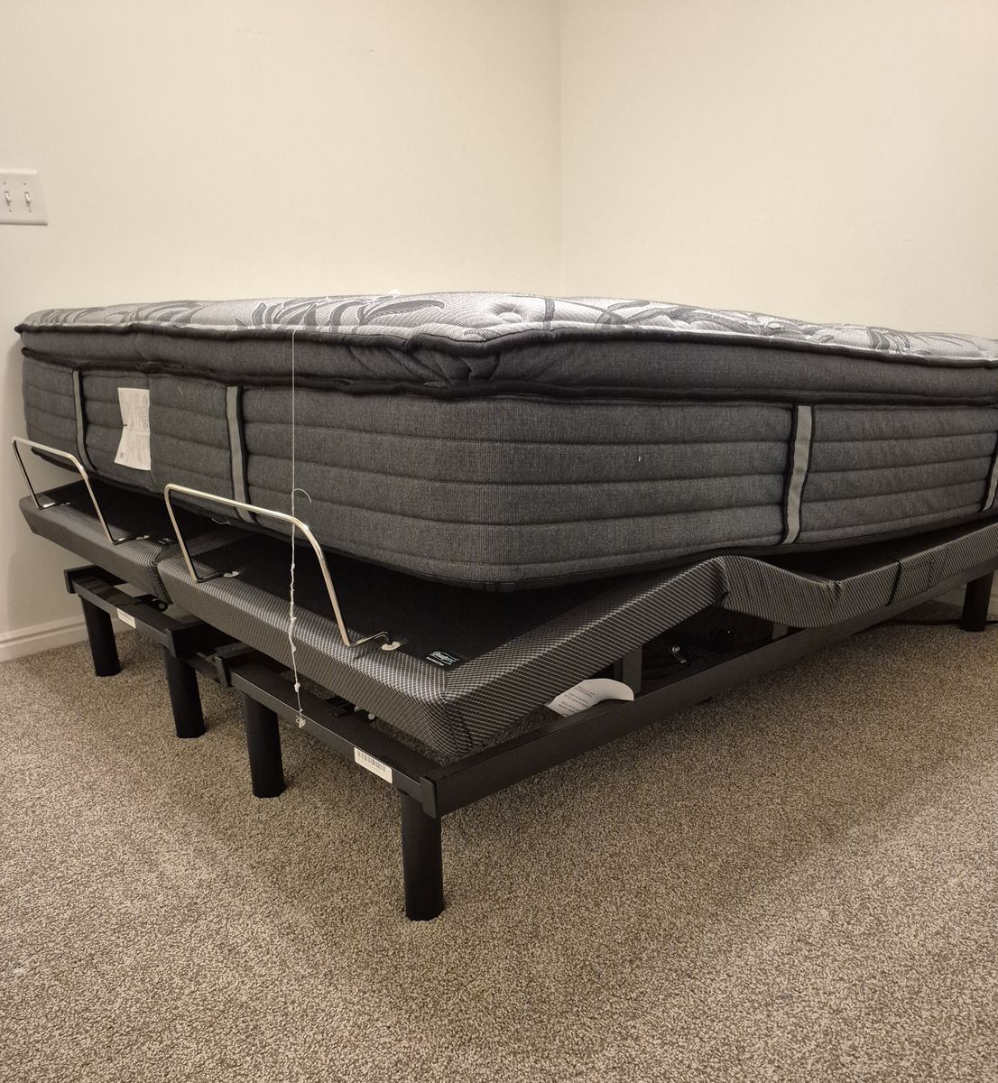 This is a nice King size bed. It has the option to raise the top and bottom of the bed. Its controlled by remote. I dont need it anymore, im asking $250.