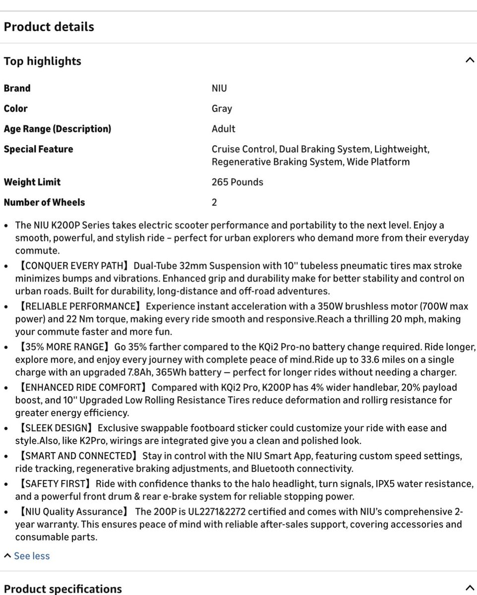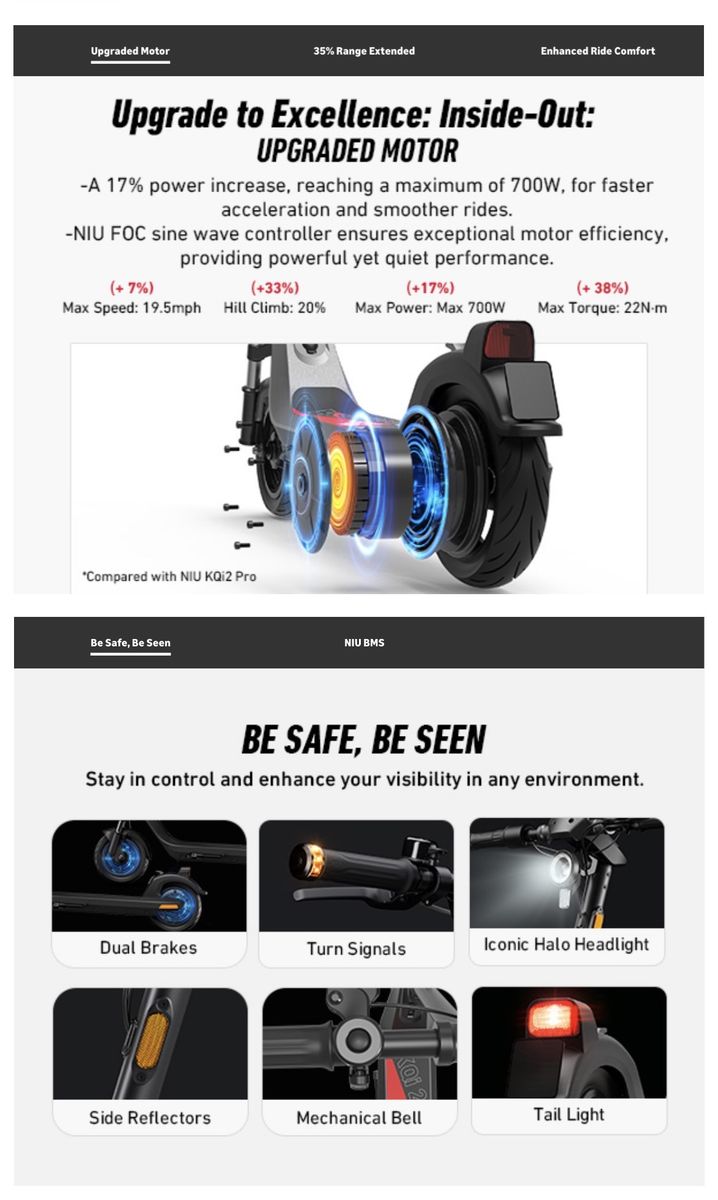 Great commuting scooter with adult build capability!! new 35% battery increase and torque hill climb Assistance.. a huge perk in utah! Upgraded brake design for safety- Model has wider foot base and handlebar for a more stable feel. 10" tubeless tires for smoother ride and less maintenance.. has "off road" tread for varied ground.