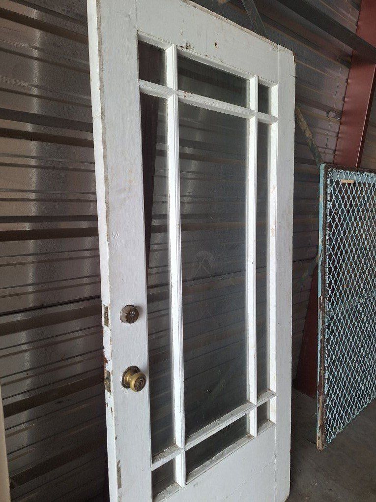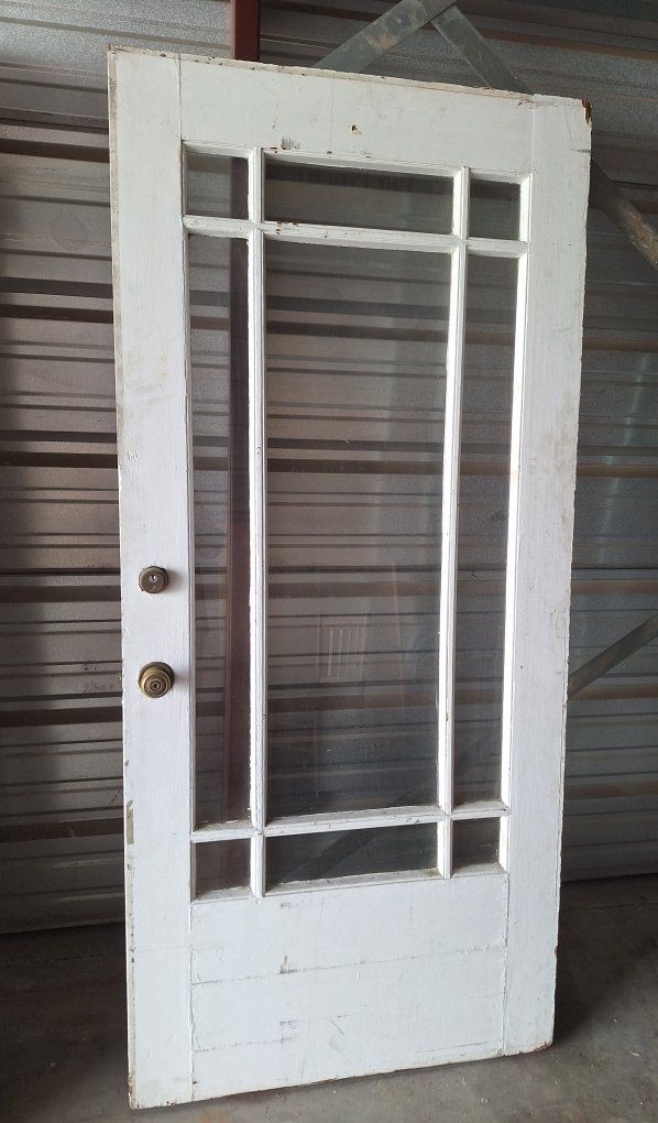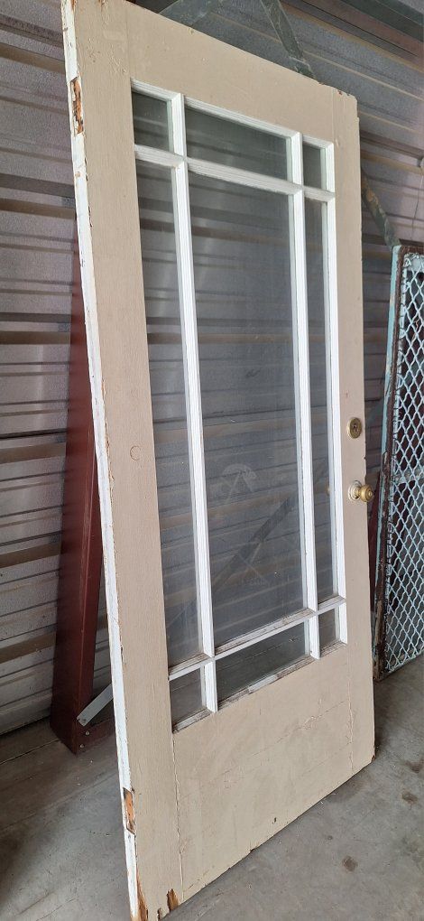 CashAppI've got a gorgeous antique 20th century mission style exterior door.This thing is absolutely amazing! Super heavy duty and all the glass is intact. Solid wood. Dimensions are 80" tall, and 36" wide. This was in one of our barn shops back east in Ohio. We've used it for display and decor at our shows. Lots of potential! Comes from a smoke and pet free environment. Please see photos for closer details, thanks for looking!