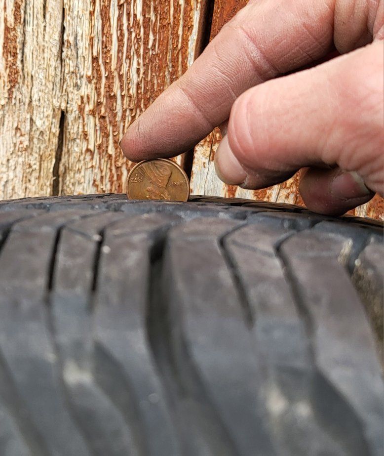 CashAppSet of 5 factory aluminum wheels and tires from a Jeep Wrangler JK. • Tire size: 255/75R17 • Tires: Goodyear Wrangler • Bolt pattern: 5x5 (5x127) • Includes matching spare (5 total) • Factory Jeep wheels with center caps Tread is about 4/32 (penny test photo included around Lincoln’s ear). Good budget set for daily driving, spare set, or winter wheels for a JK.